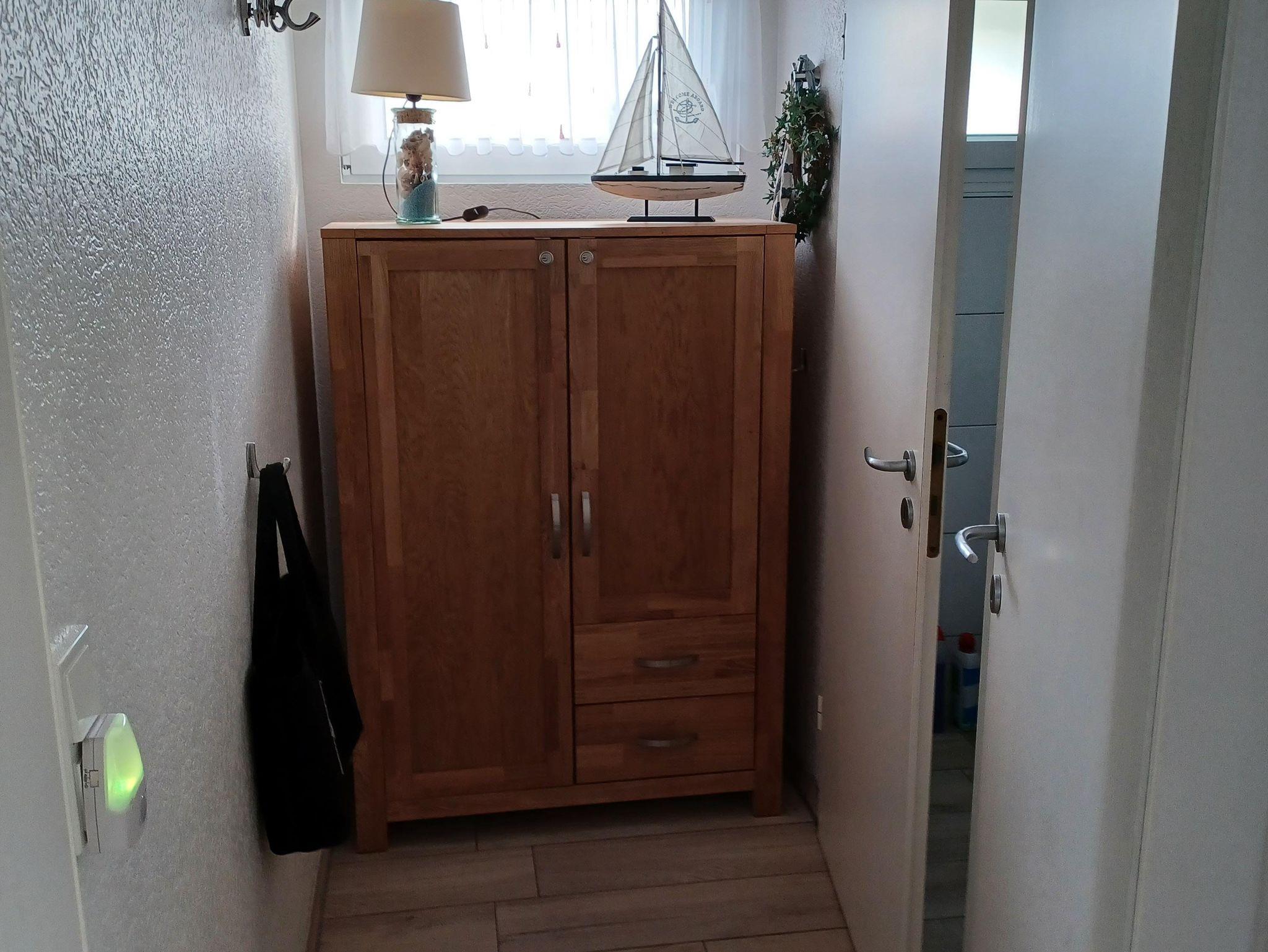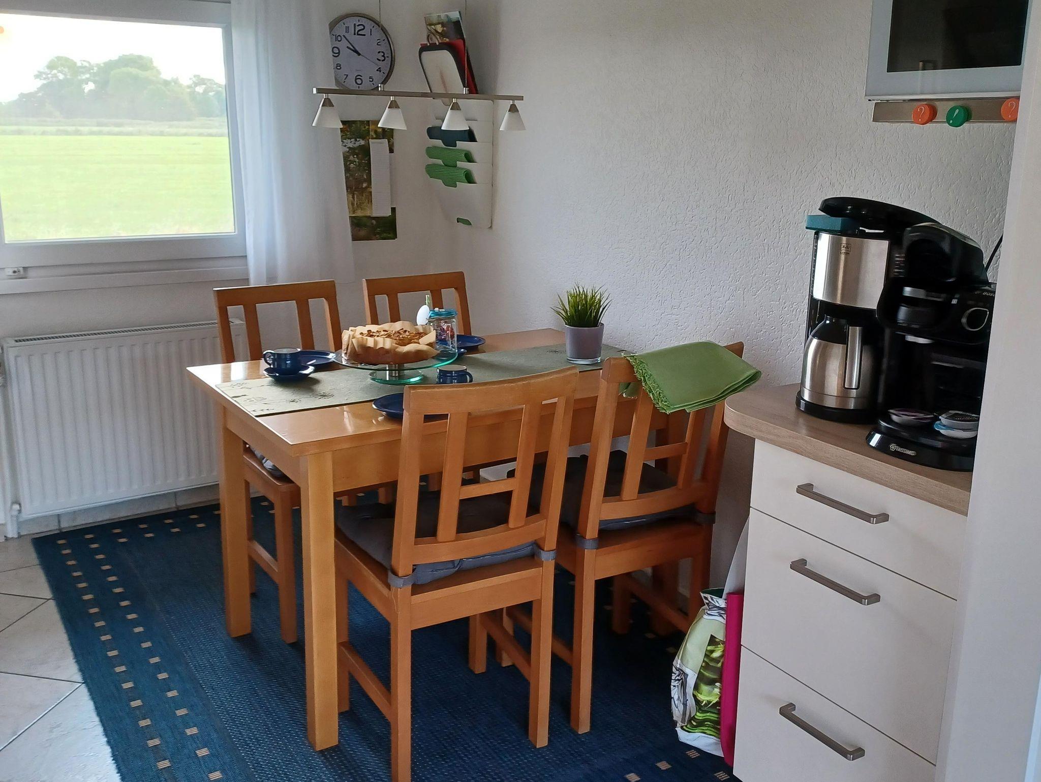 Das sehr gemütliche und helle Ferienhaus befindet sich im Ferienpark Eckwarderhörne. Es besteht aus einem offenen Wohnbereich mit einer großen Fensterfront, einem Zugang auf die überdachte Terrasse und den großen Garten. Der Wohnbereich besteht aus einer gemütlichen Wohnecke, einer Leseecke und einer Wohnwand mit SAT-TV, DVD-Player und Radio. In der vollausgestatteten Küche finden Sie eine Küchenzeile mit Kühlschrank, Geschirrspüler, Backofen, Ceranfeld, Kaffeemaschine, Tassimo Kapselmaschine, Toaster, Wasserkocher, Eierkocher, Mixer und eine Essecke. Das Doppelschlafzimmer ist mit einem Doppelbett ausgestattet. Im Kinderzimmmer befinden sich 2 Einzelbetten und ein Hochbett, dort steht ein Fernseher zur Verfügung. Im Schlafzimmer gibt es Verdunklung, Fliegengitter und ein Radio. Ein Bad mit Dusche und WC steht Ihnen zur Verfügung. Im eingezäunten Garten mit überdachter Terrasse finden Sie einen Strandkorb, Sitzmöbel, Liegen und ein Gartenhaus zum Abstellen Ihrer Fahrräder.