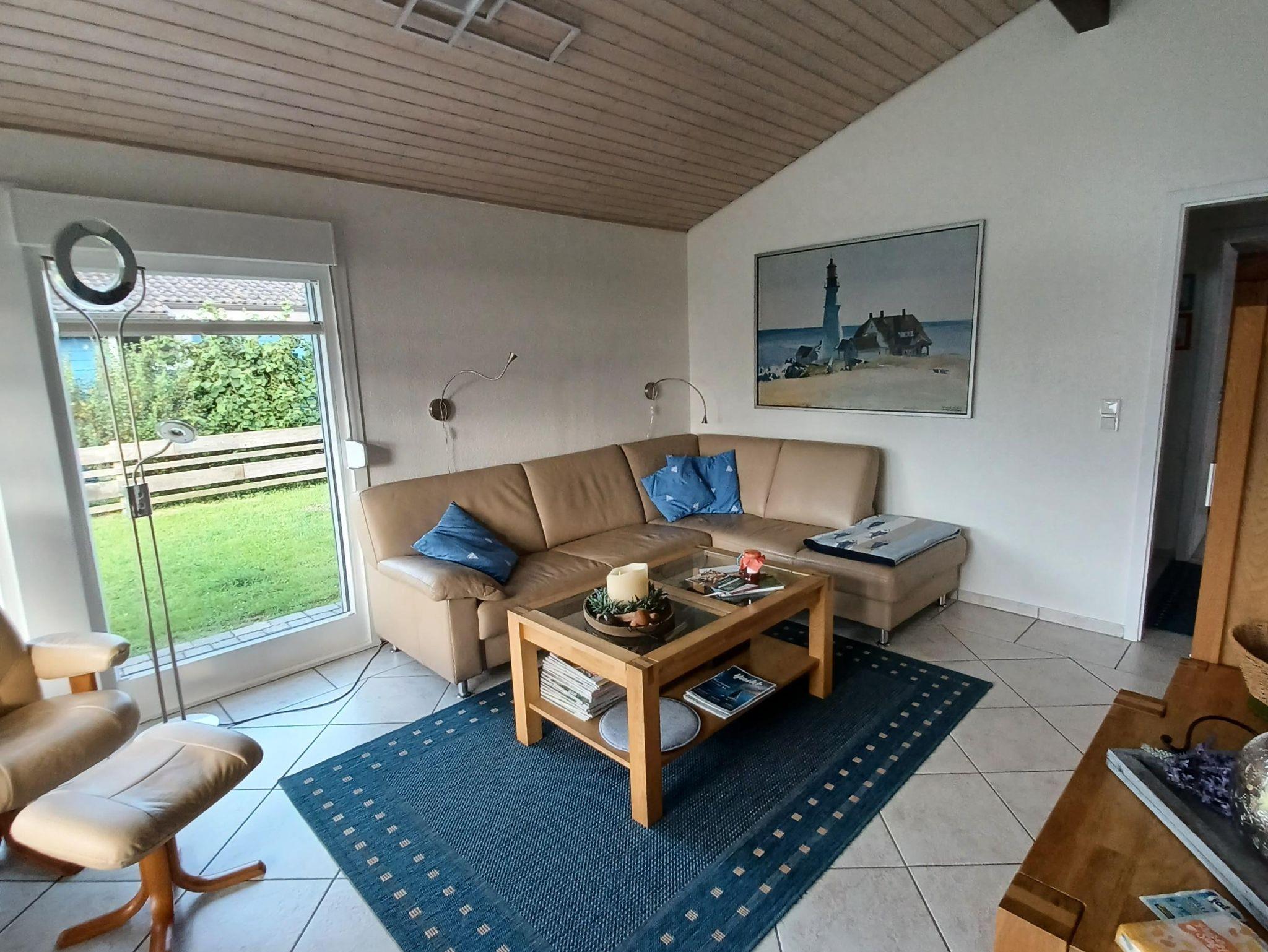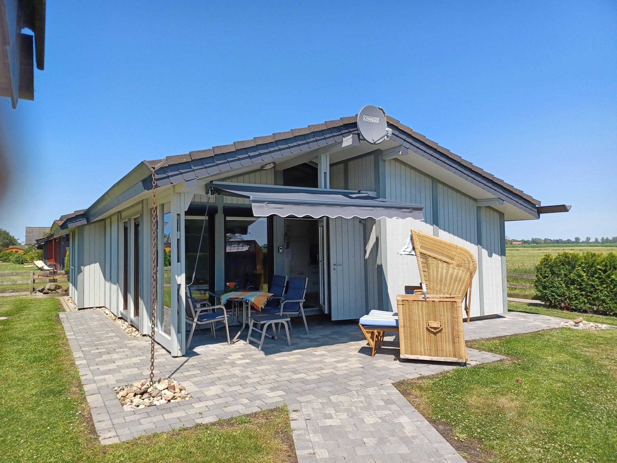 Gemütliches Ferienhaus MEERZeit in Butjadingen mit Terrasse, Blick auf Binnensee und nahe Nordsee-Strand.