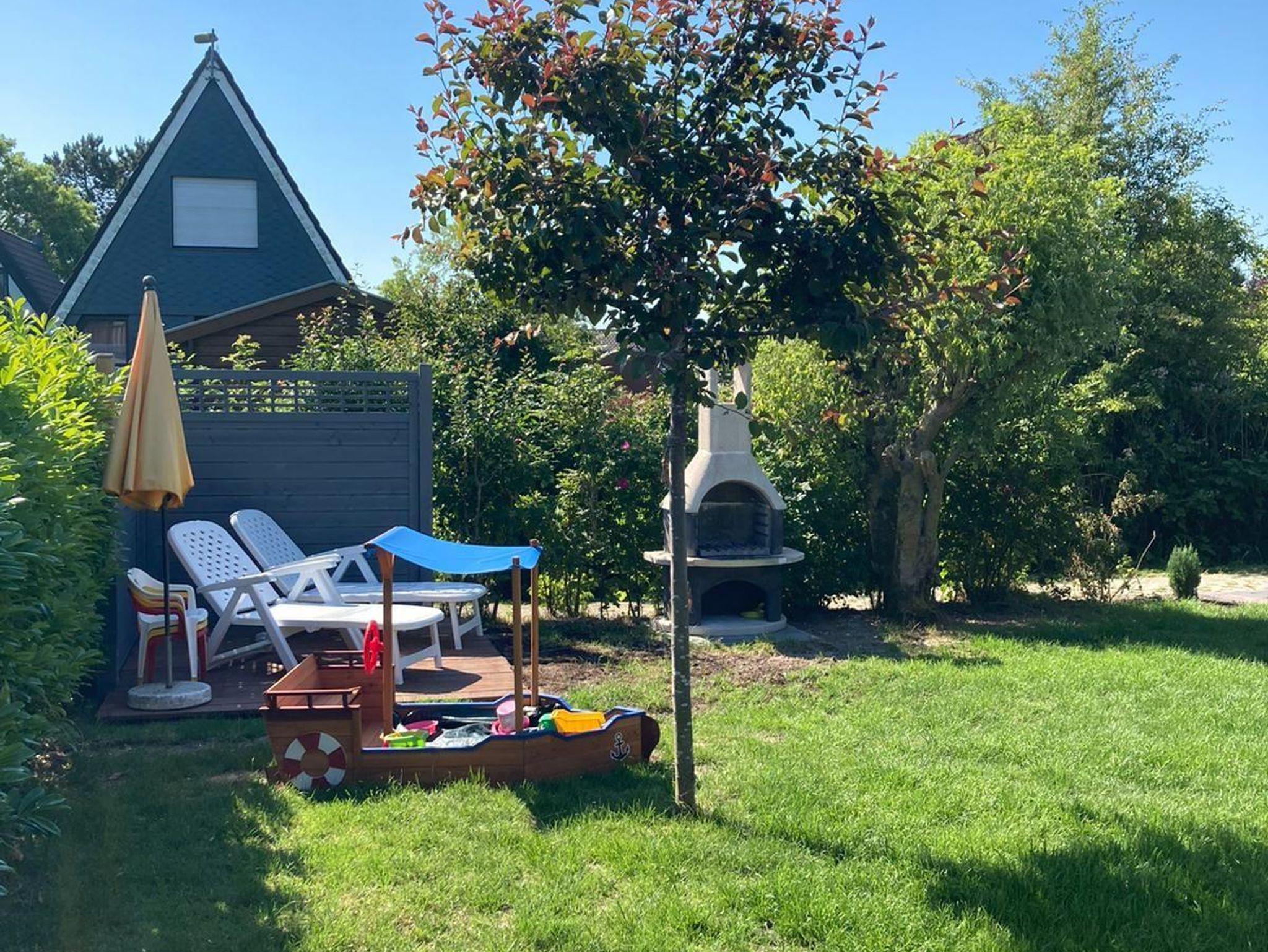 Das helle Badezimmer ist mit einer Dusche ausgestattet und bietet alles, was man für einen entspannten Start in den Tag benötigt. Die Wohnküche ist gemütlich eingerichtet und voll ausgestattet, sodass die Zubereitung gemeinsamer Mahlzeiten zum Genuss wird. Direkt an das Wohnzimmer schließt die Terrasse an, die mit bequemen Gartenmöbeln, Liegestühlen, einem Sonnenschirm und einem Grill ausgestattet ist. Hier können die Gäste herrlich entspannen, während die Kinder im Garten spielen.