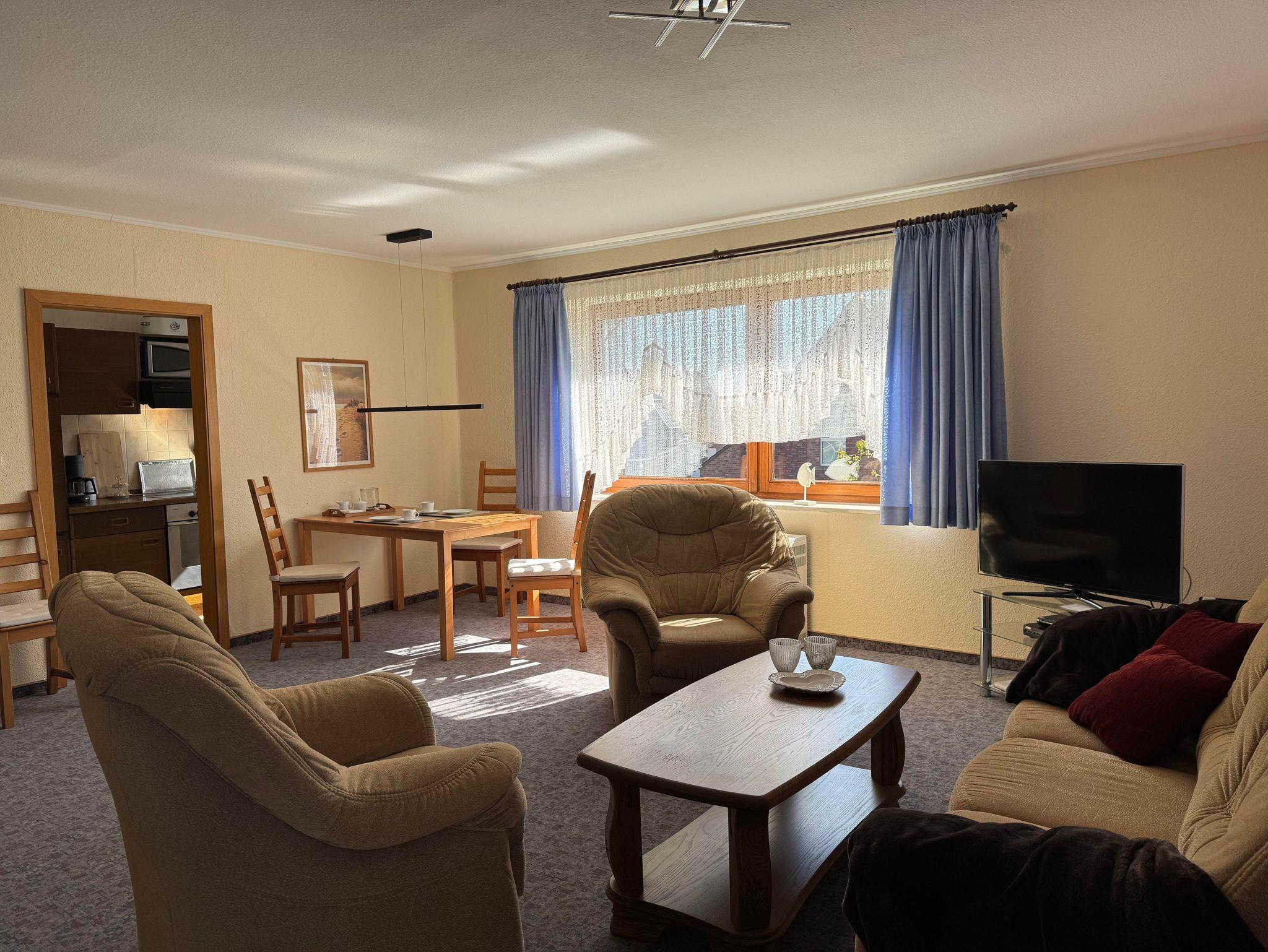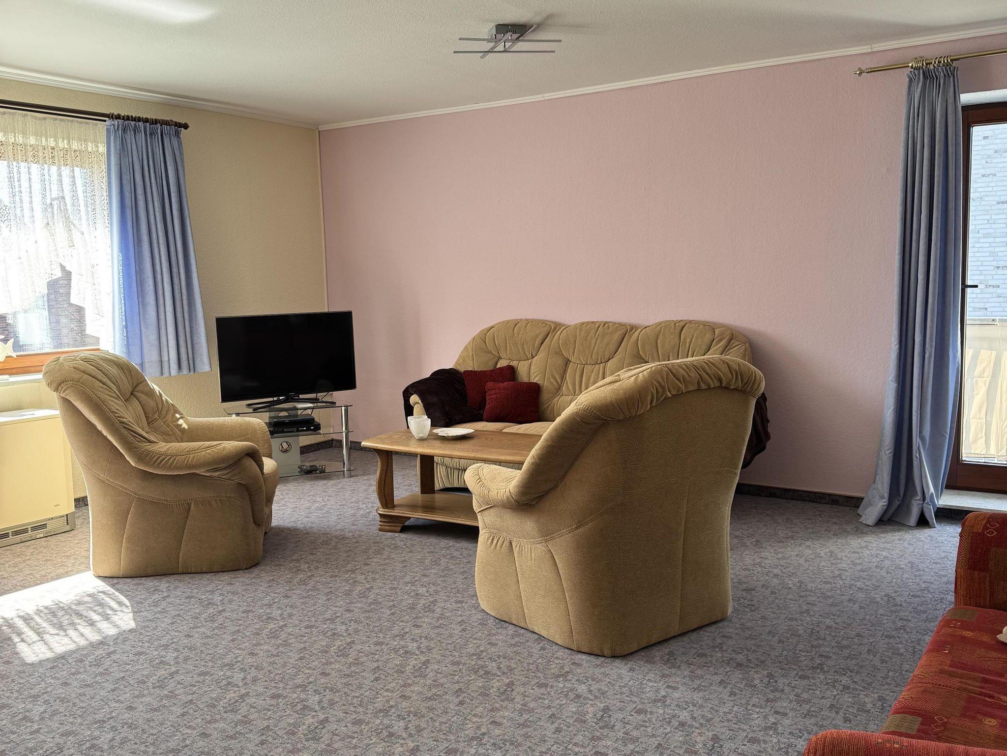 • Großes Wohnzimmer mit bequemer Sitzgruppe, zusätzlicher Schlafcouch, Eßplatz, Sat-TV, Radio uvm.