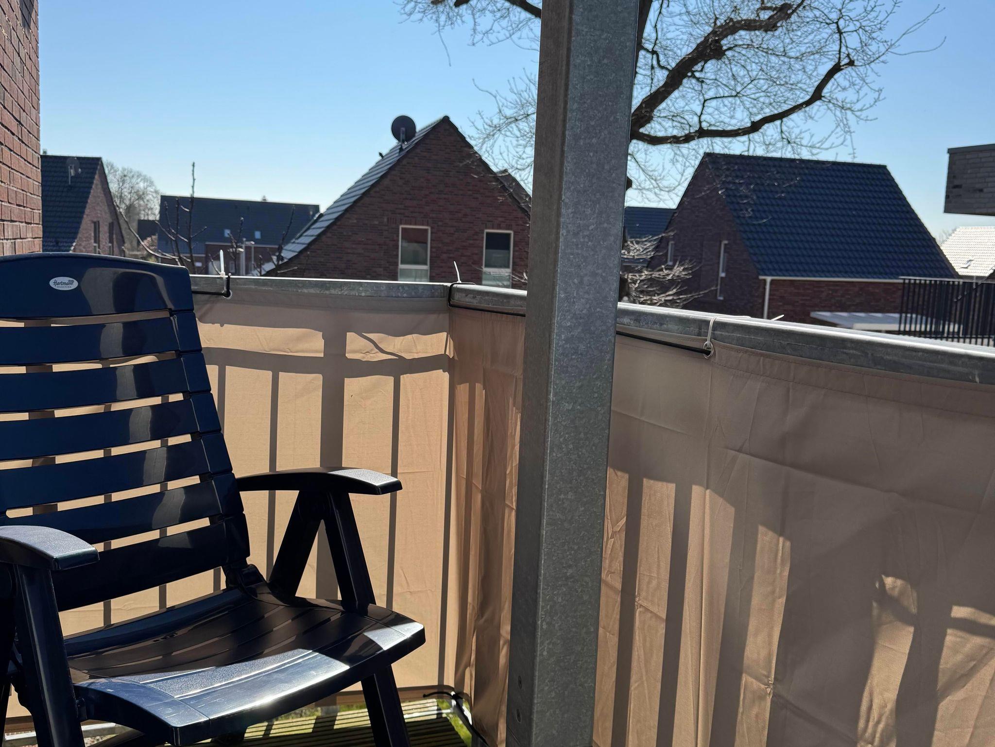 • kleiner Balkon mit Bankirai Holzboden, Blick auf den Deich