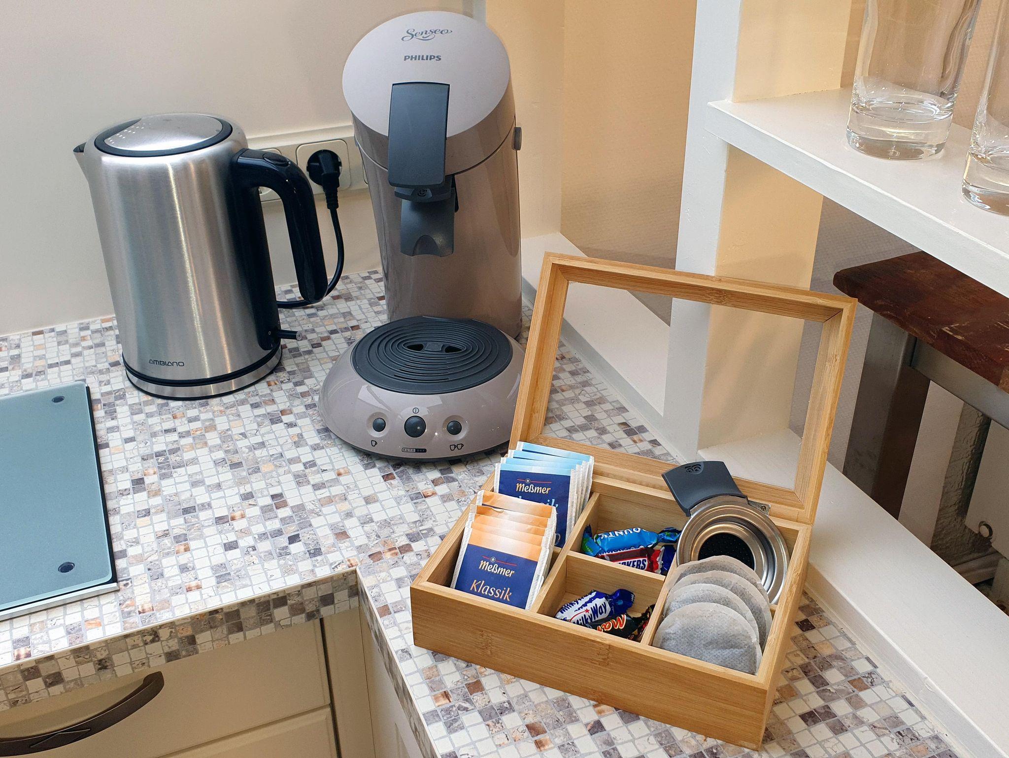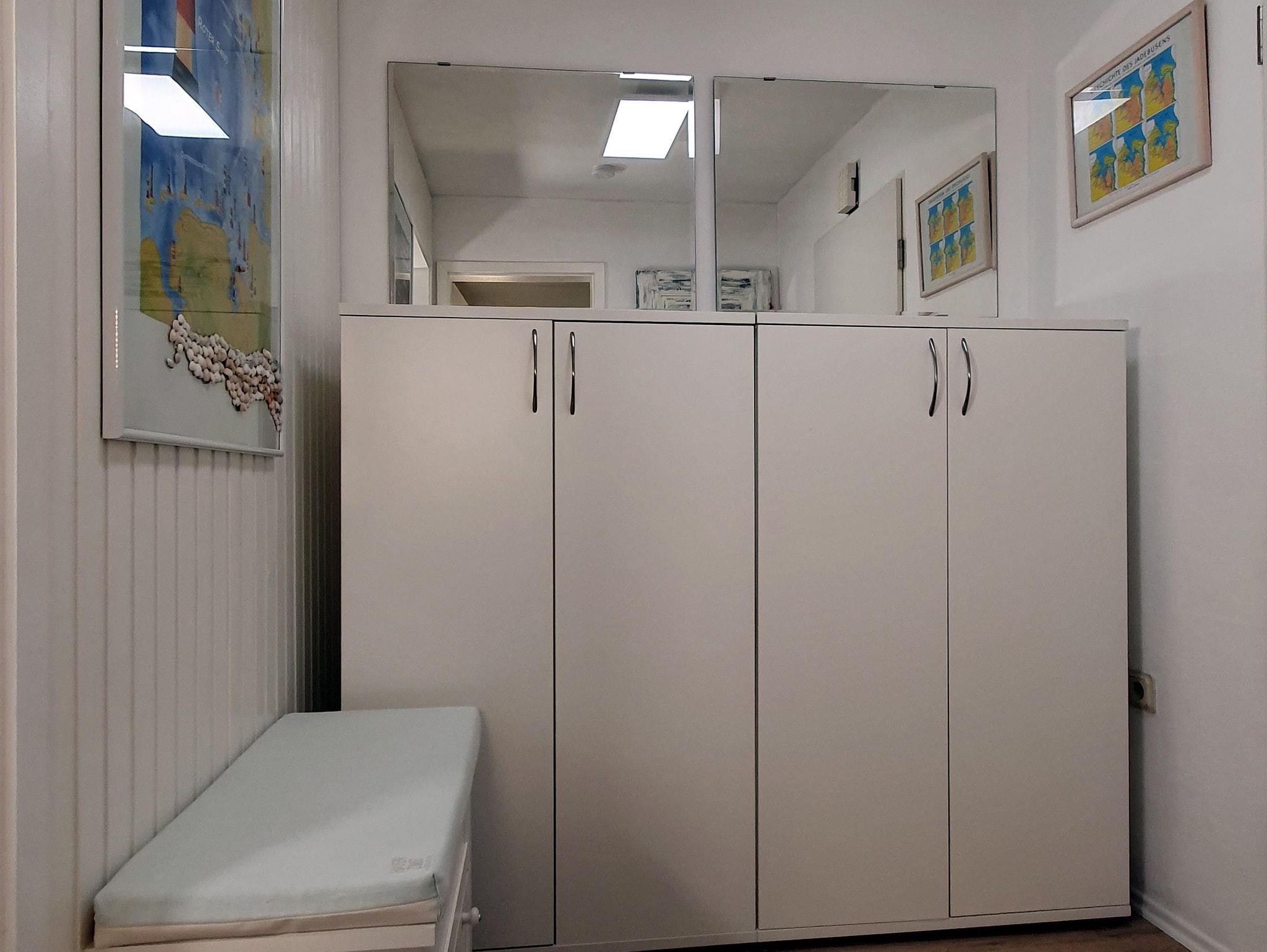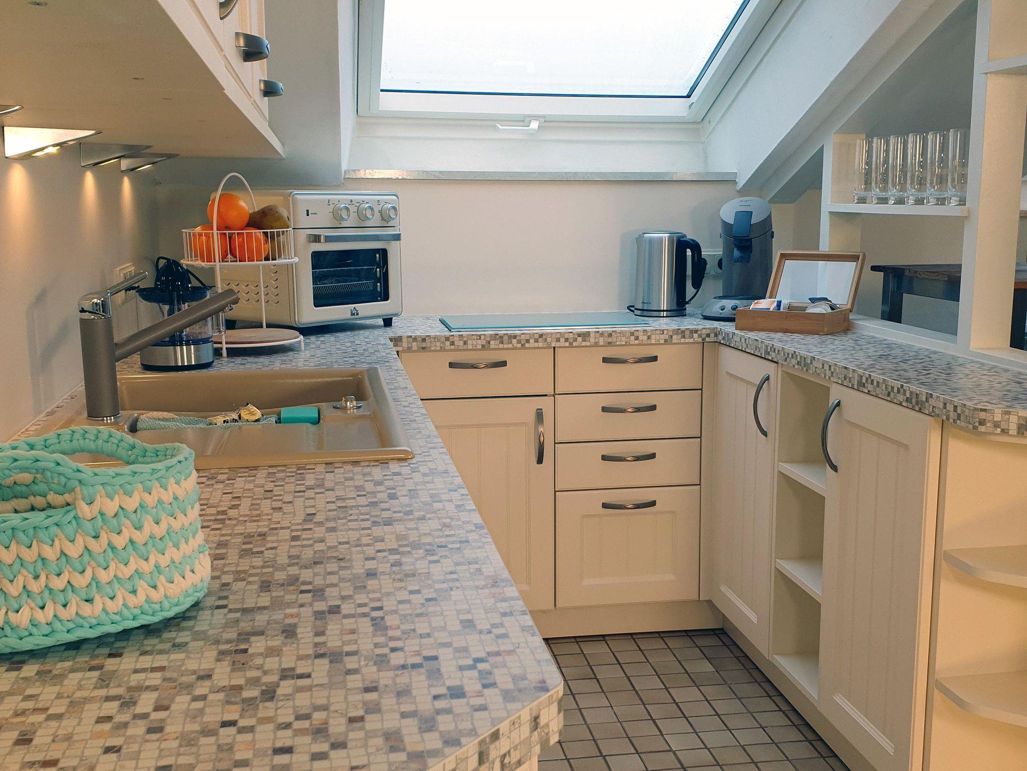 Beim Betreten der Wohnung im Dachgeschoss in der zweiten Etage gelangen Sie in einen kleinen Flur mit Garderobe, Spiegeln und Schränken mit reichlich Stauraum. Zur linken Seite befindet sich das Badezimmer mit WC, Eckdusche und Badewanne. Ihr Bad können Sie unter einem künstlichen Sternenhimmel genießen. Der echte Sternenhimmel ist durch das Dachfenster zu beobachten. Wenn Sie vom Flur weiter geradeaus gehen, gelangen Sie in den Wohnraum mit abgetrennter Küche. In der sehr gut ausgestatteten Küche befinden sich als Sonderausstattung ein Geschirrspüler, eine Waschmaschine/Wäschetrockner, ein kleiner Backofen und ein Induktionskochfeld. Damit stehen Ihrem genussvollen Essen keine Hindernisse im Weg. Ihren duftenden Kaffee können Sie in einer Senseo, Filterkaffeemaschine oder Frenchpress zubereiten, eine kleine Auswahl an Teesorten steht ebenfalls für Sie bereit. Im Wohnraum erwartet Sie eine hohe Esstheke mit Barhockern für ein wohlschmeckendes Essen mit einem traumhaften Blick auf den Hafen, die Marsch, den Nationalpark und die Nordsee. Von langen Wanderungen an der Küste können Sie sich auch auf dem Sofa erholen. Ein Smart-TV erlaubt Ihnen die Nutzung von kostenfreien Streamingdiensten. Eine Sennheiser Ambeo Soundbar plus sorgt für den richtigen Sound. Mobiles Arbeiten ermöglicht ein kleiner Tisch mit zwei Stühlen. Hier steht auch ein ausklappbares komfortables Schlafsofa für 2 Personen. Hinter dem Wohnzimmer schließt sich das Schlafzimmer an, in dem ein weiterer Tisch mit Stuhl, ein Kleiderschrank und zusätzlicher Stauraum genutzt werden können. Das Doppelbett hat eine komfortable Breite von 180cm, Bettdecken und Kopfkissen sind Allergiker freundlich, daher sind Haustiere leider nicht erlaubt. Im Schlafzimmer ist ein Dachfenster, von dem aus Sie ebenfalls auf die Nordsee gucken können. Alle Dachfenster sind verdunkelbar und sind, bis auf das Bad mit Insektengittern versehen. Ebenfalls Am Hafen, nur ein paar Meter entfernt, können Sie gepflegt im Restaurant Dat Havenhuus oder dem Restaurant Nordseeblick speisen.