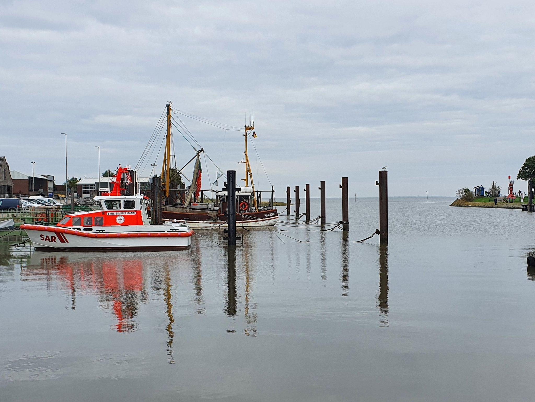 Genießen Sie von der Dachgeschosswohnung Hafen Zwei in Fedderwardersiel den atemberaubenden Meerblick und Komfort direkt am Kutterhafen.