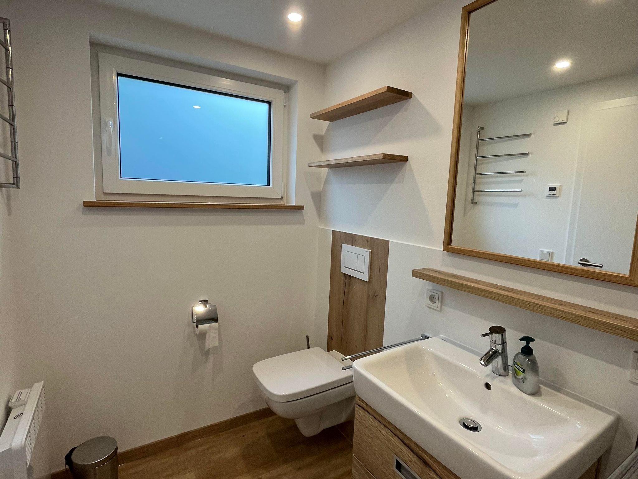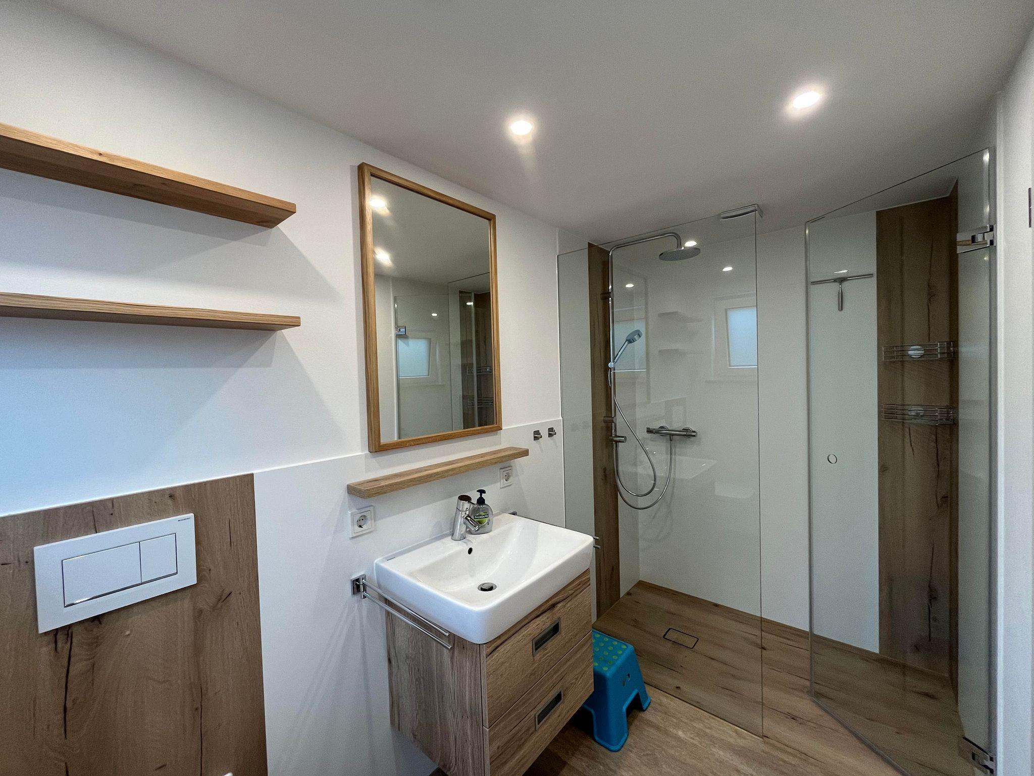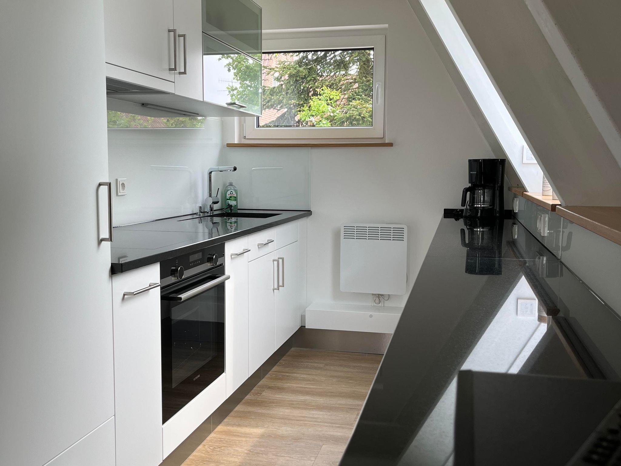 Das haustierfreie Ferienhaus verfügt im EG über ein neues Badezimmer mit großzügiger, ebenerdiger (Regen-)Dusche, WC, Insektenschutzrahmen und Fußbodenheizung. Die Küche ist mit einem Induktionskochfeld, einer Granitarbeitsplatte, einem großen Geschirrspüler und einer Waschmaschine ausgestattet. Der große Kühlschrank mit Gefrierfach bietet genügend Stauraum. Das helle Wohnzimmer mit einem Flachbildfernseher mit Smart-TV (Zugang mit eigenen Zugangsdaten), einem Ecksofa mit Couchtisch und einem Esstisch mit 5 Stühlen. Ein Hochstuhl Tripp Trapp inkl. Baby Set ist ebenfalls vorhanden. Auch ein Schreibtisch steht zur Verfügung.