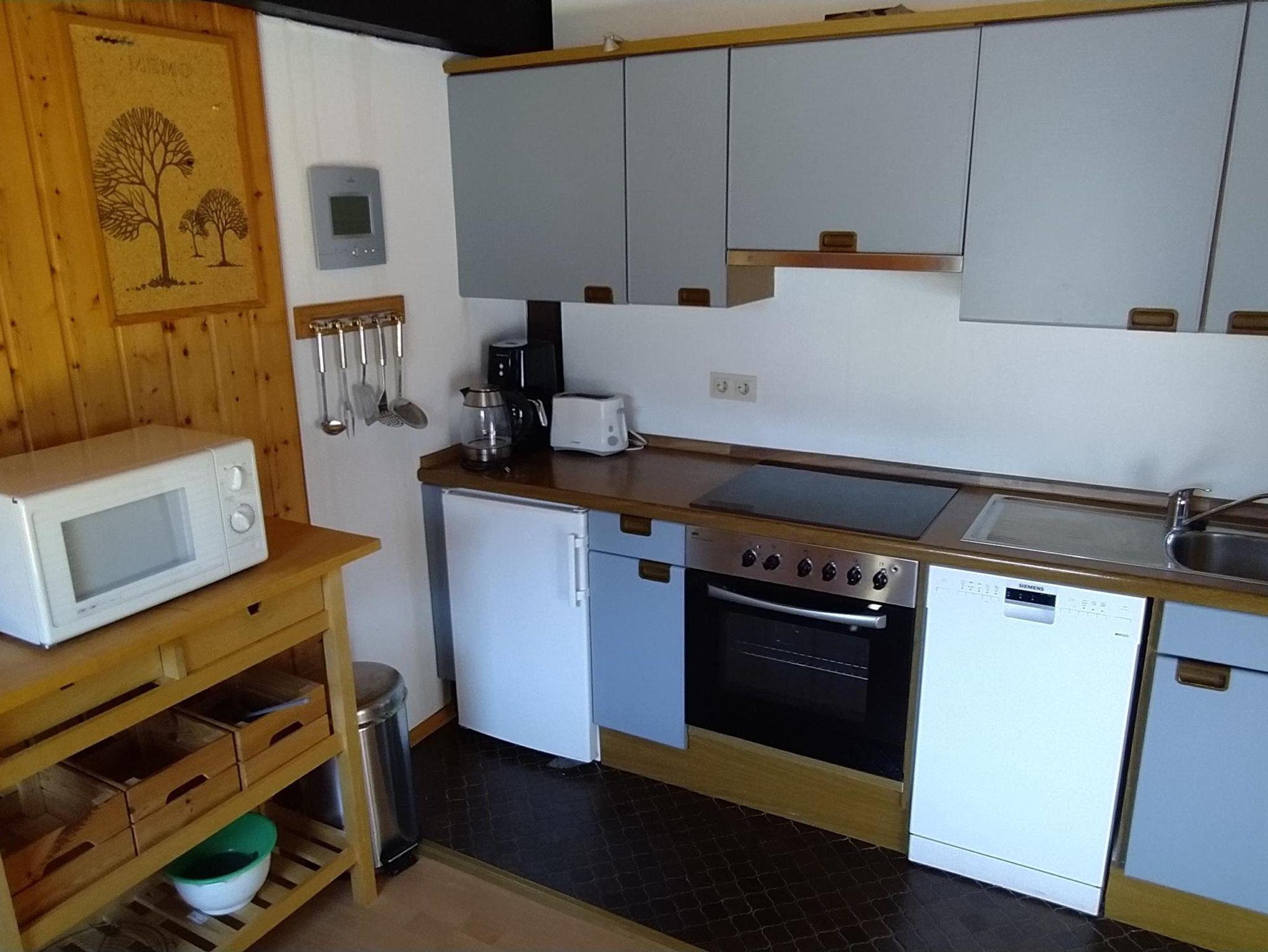 • Moderne Küche mit Backofen, Mikrowelle, Geschirrspüler & Toaster