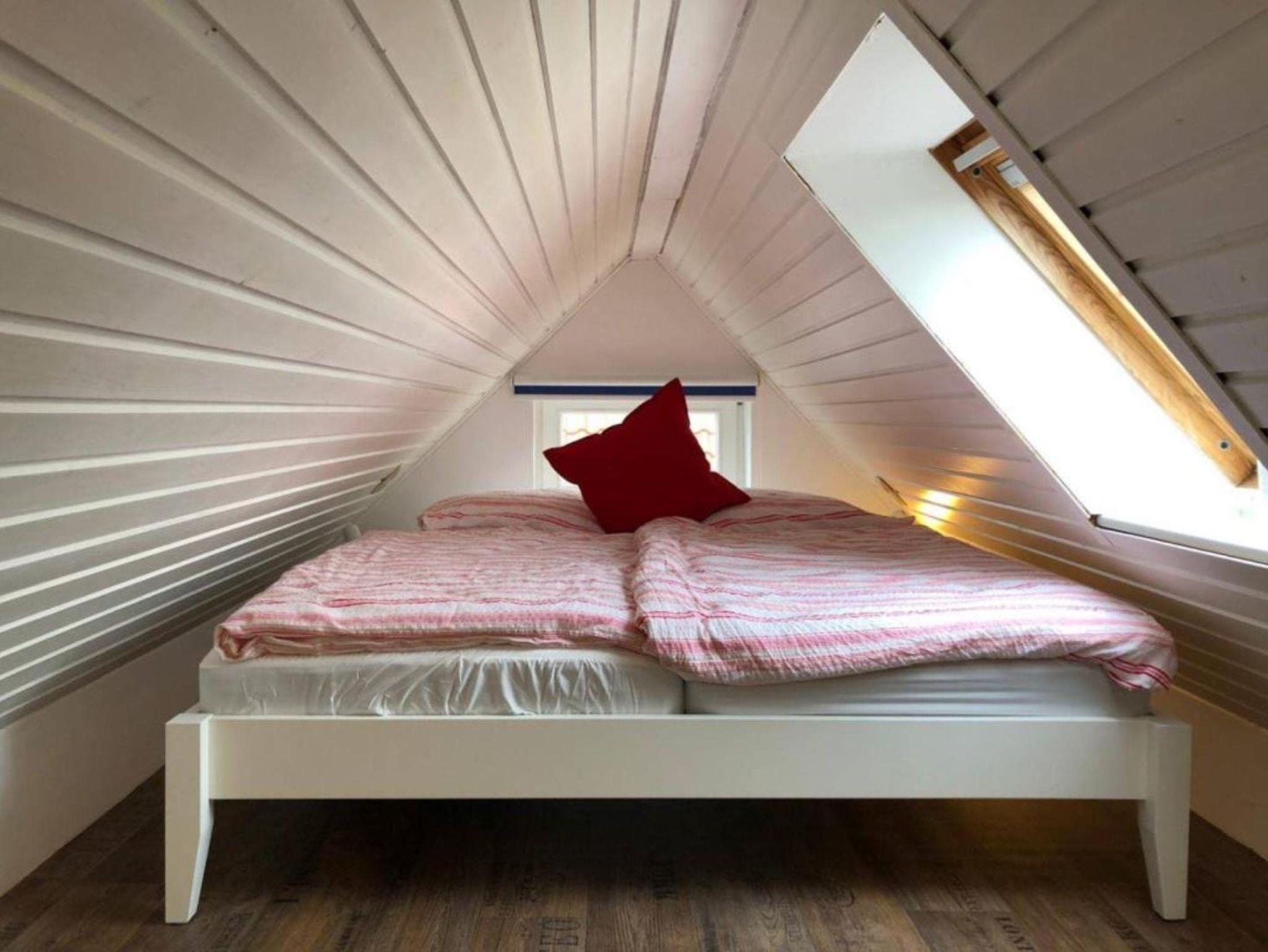 Die ca. 70qm große Wohnung für 4 Personen liegt im Obergeschoß und besteht aus einem Wohnzimmer mit einer vollausgestatteten Kochecke und einer zusätzlichen Schlafmöglichkeit, Schlafzimmer, Bad mit Dusche und einem Dachgeschoß mit Doppelbett. Das Dachgeschoß hat eine Stehhöhe von 1,60m und eignet sich besonders für Kinder als Schlaf- und Rückzugsbereich.