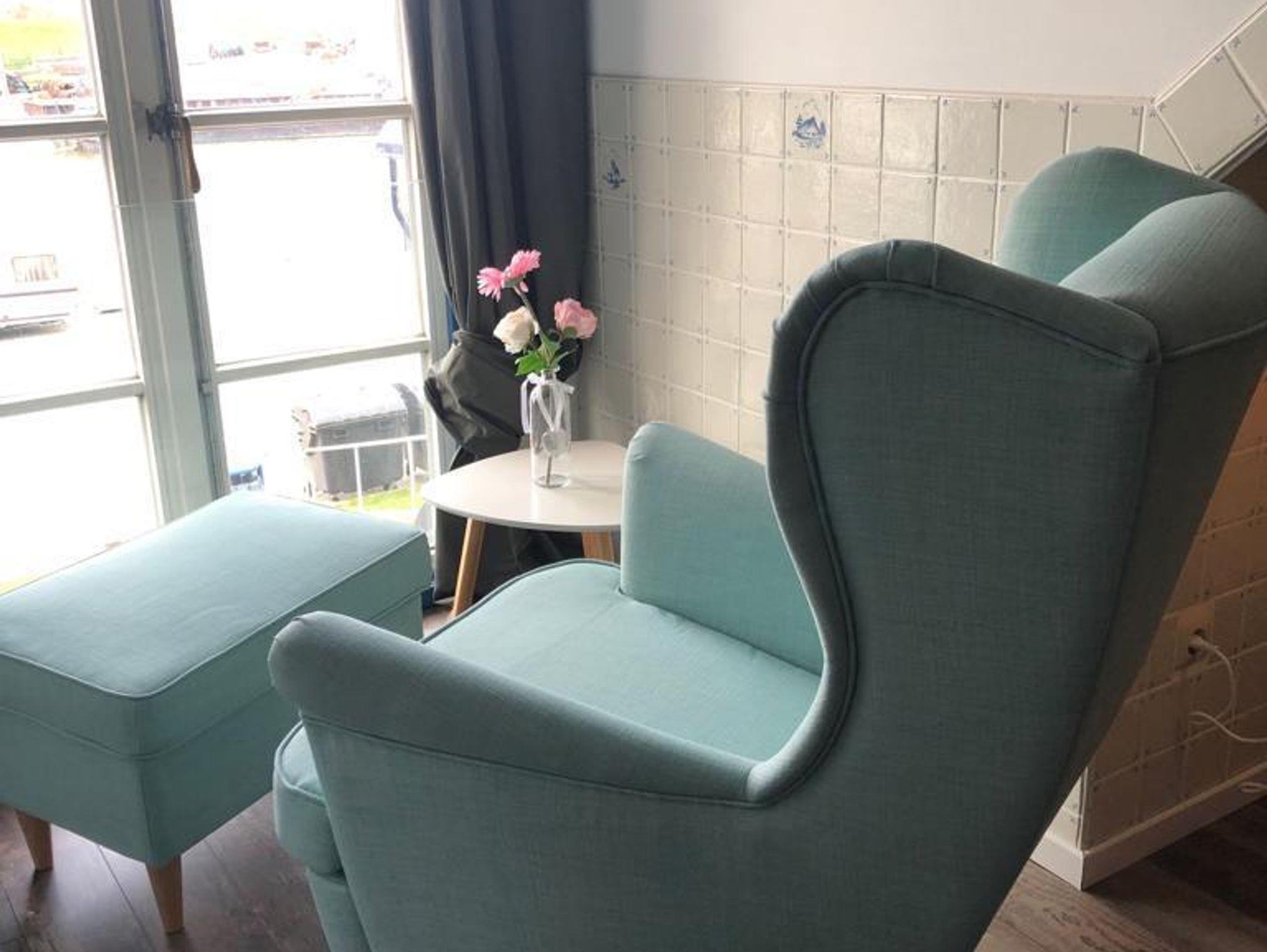 Im Wohnzimmer können Sie gemütlich im Sessel sitzen und durch die großen Fenster in der Dachgaube die Schiffe im Hafen von Fedderwardersiel beobachten. Bei guter Sicht sehen Sie vielleicht sogar von Weitem die Containerschiffe auf der Nordsee.
