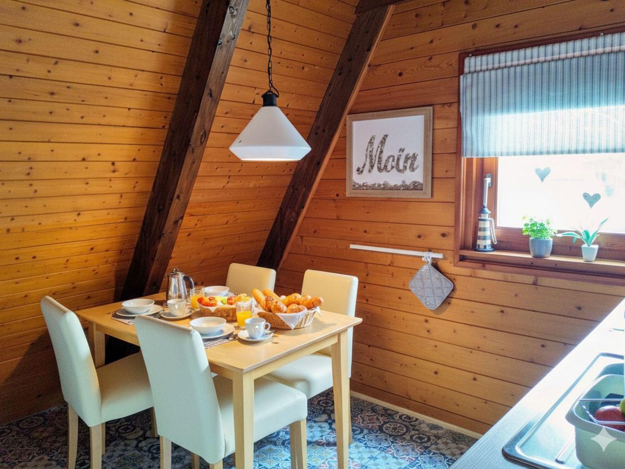 Das gemütliche Nurdachhaus liegt am Ende einer Sackgasse im Ferienpark Fedderwardersiel. Das mit Liebe zum Detail eingerichtete Haus verfügt über ein großes Wohn-/Esszimmer mit einem Sat-TV, DVD-Player sowie einigen Spielsachen für Kinder. In der separaten und gut ausgestatteten Küche gibt es nochmals einen Essetisch mit vier Stühlen. Im gegenüberliegenden Bad befindet sich neben einer Dusche und der Toilette auch eine Waschmaschine. Durch die Raumspartreppe (gesichert durch ein Treppenschutzgitter) gelangen Sie in die beiden Schlafzimmer. Der nicht einsehbare Garten liegt hinter dem Haus. Die Gartenmöbel sowie der Grill warten schon auf laue Sommerabende. Ein kostenloser Parkplatz befindet sich direkt vor dem Haus. Ein Reisebett für Kinder, ein Hochstuhl sowie das Internet steht Ihnen kostenfrei zur Verfügung.