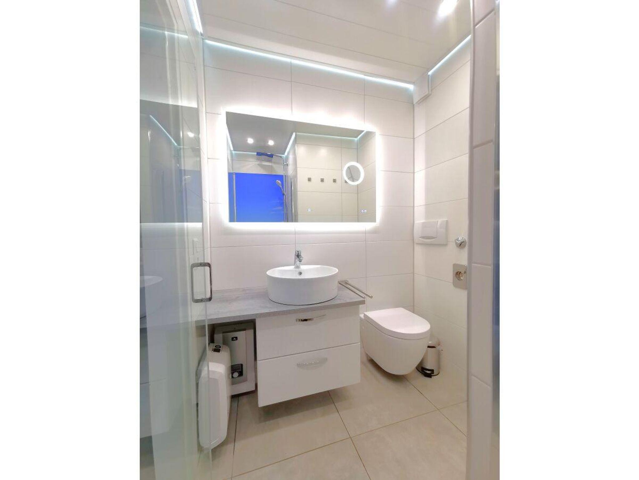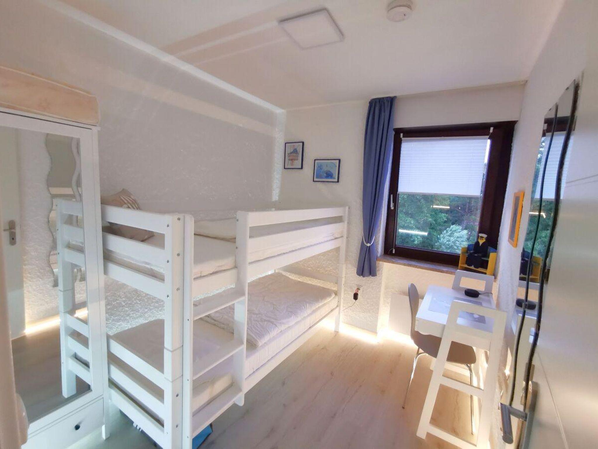 Die Ferienwohnung 24 befindet sich im 2. OG der Appartementanlage Albatros und ist für bis zu 4 Personen (2 Erwachsene + 2 Kinder oder 3 Erwachsene) ausgestattet. Sie verfügt über ein großzügiges Wohnzimmer mit Sitzecke, Fernseher sowie eine Wohnküche, ausgestattet mit Ceran-Kochfeld, Backofen, Mikrowelle, Kühlschrank mit Gefrierfach, Waschmaschine, Geschirrspüler, Wasserkocher, Kaffeemaschine, Toaster, Eierkocher, Mixer und einem gemütlichen Essbereich. Zudem befinden sich in der Wohnung 2 separate Schlafzimmer, eins mit Doppelbett und eins mit 2 Einzelbetten sowie ein komfortables Bad mit bodengleicher Dusche und WC. Zur Wohnung gehört außerdem ein schöner Balkon mit Tisch und Stühlen und Sonnenschirm. Balkonseitig verfügt die Wohnung über elektrische Außenrolladen. Ein Kinderreisebett, sowie WLAN steht Ihnen kostenfrei zur Verfügung. Einen PKW-Stellplatz finden Sie in der hauseigenen Tiefgarage mit direktem Fahrstuhlzugang.