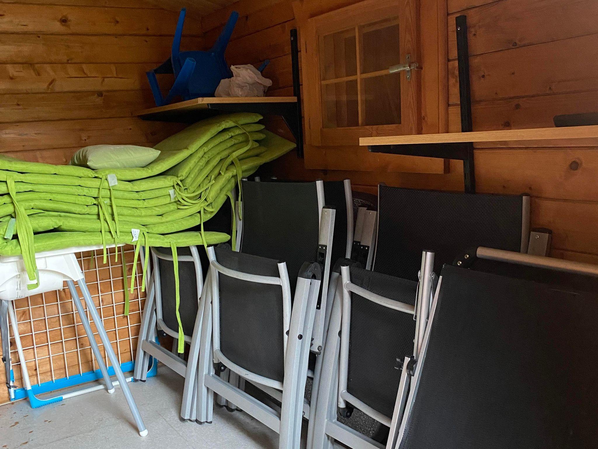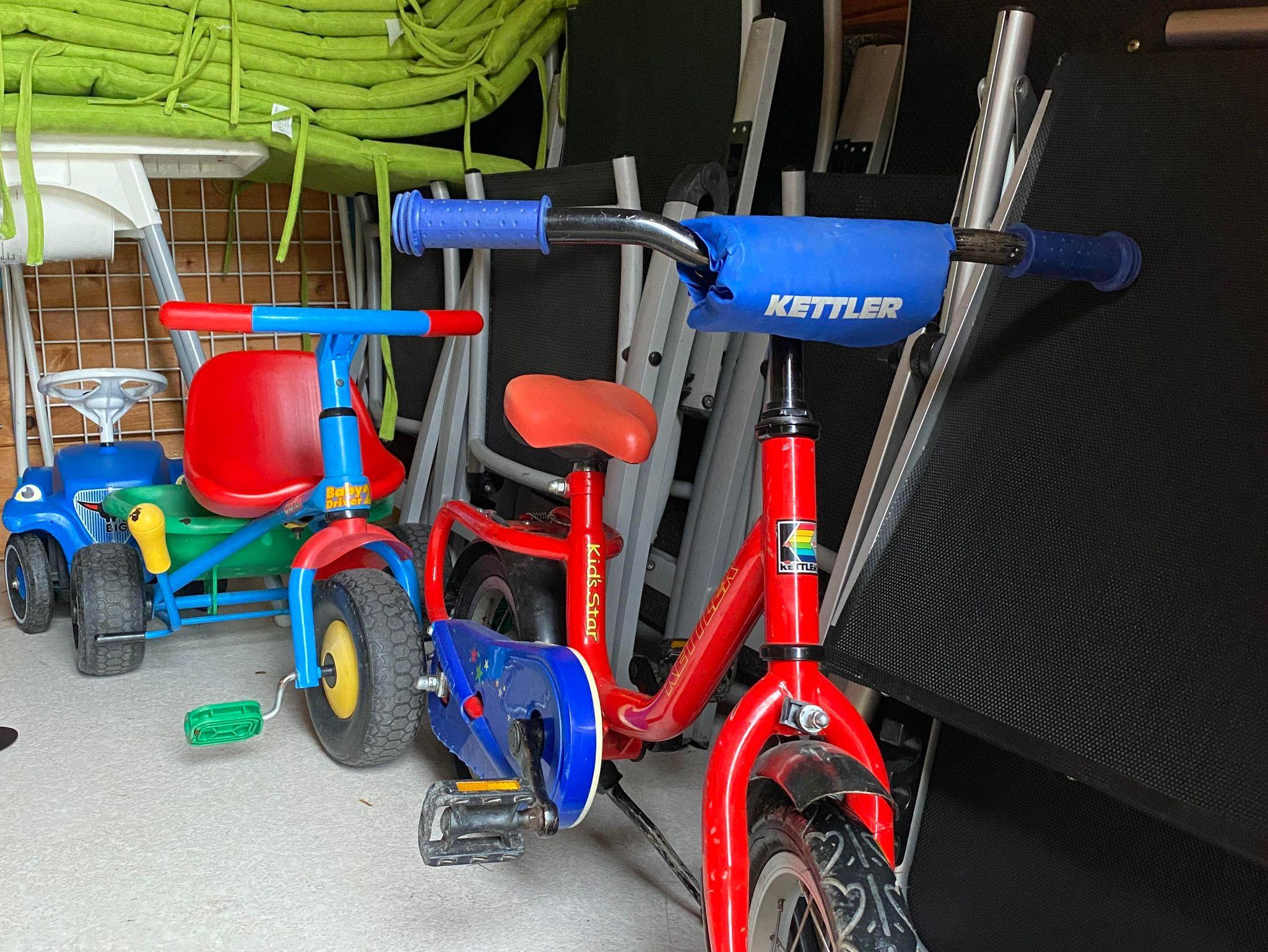 - Gartenhaus mit Abstellmöglichkeiten für Gästefahrräder und Kinderwagen - Gartentrampolin, Kinderfahrzeuge (Dreirad, Bobbycar, Kleinkinderfahrrad), Bälle und diverse Gartenspielgeräte - alle Steckdosen mit integrierten erhöhten Berührungsschutz für Kleinkinder