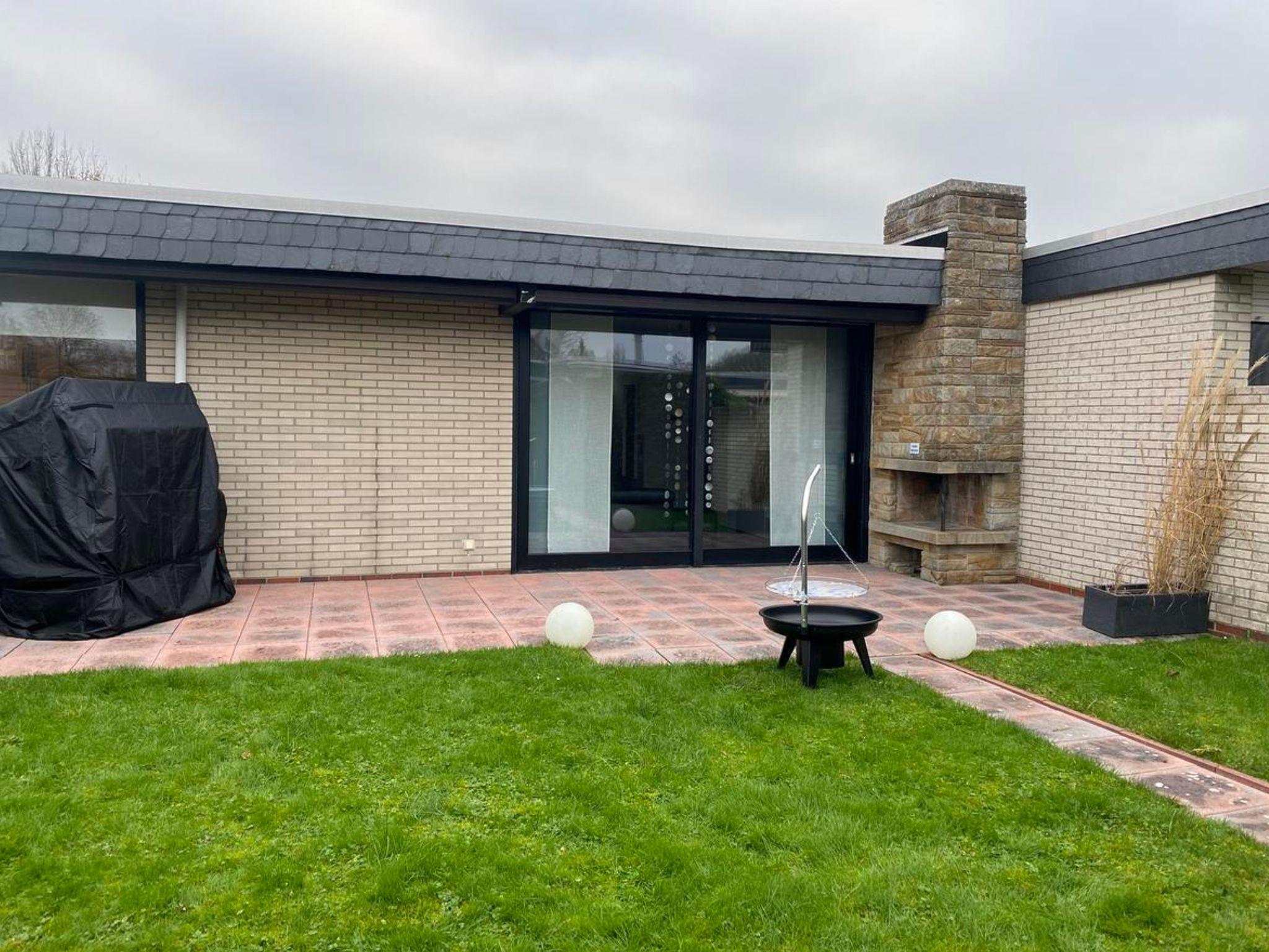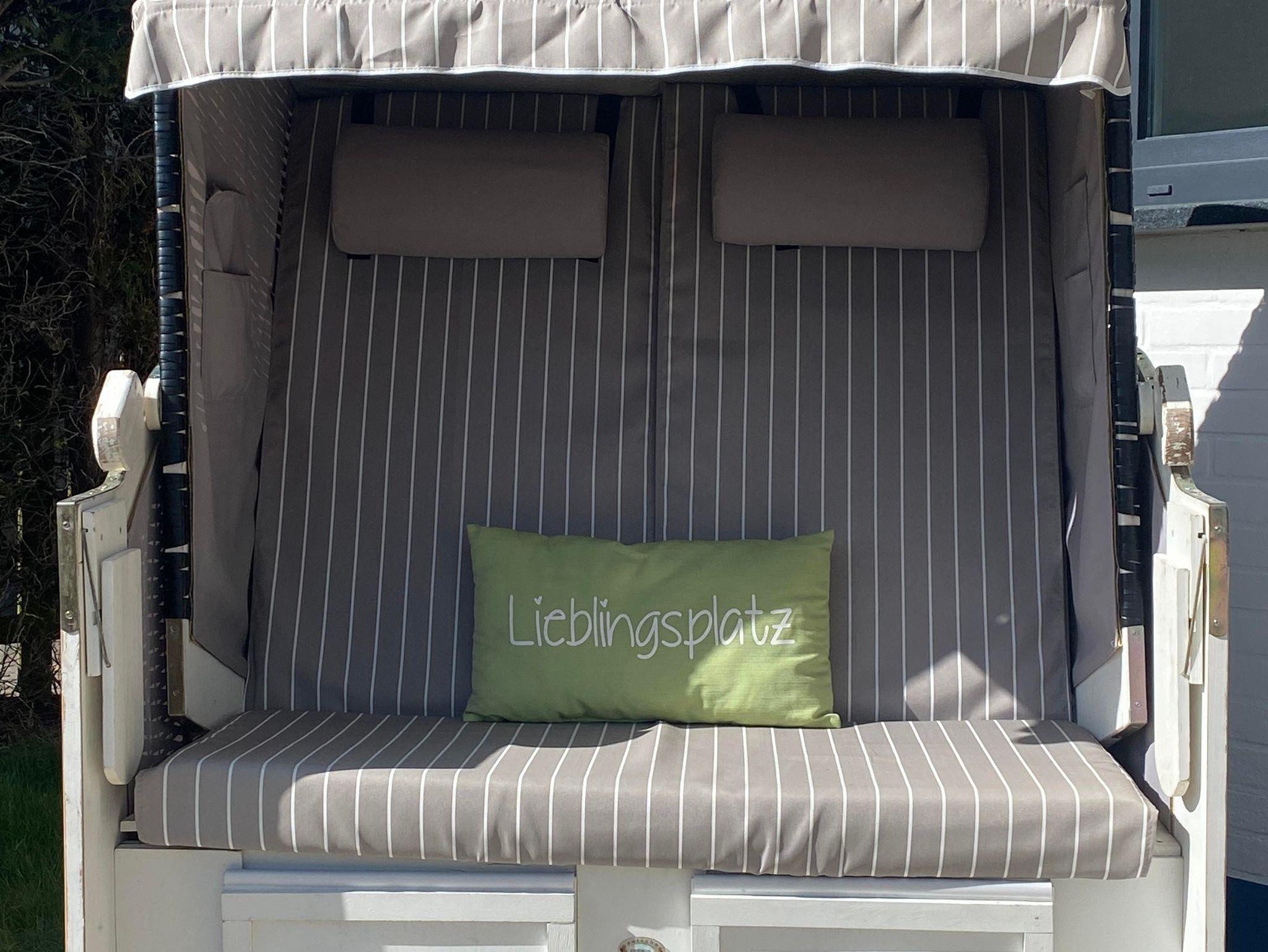 - große Terrasse mit Terrassenmöblierung, Strandkorb und Feuerstelle mit Holzkohlegrill