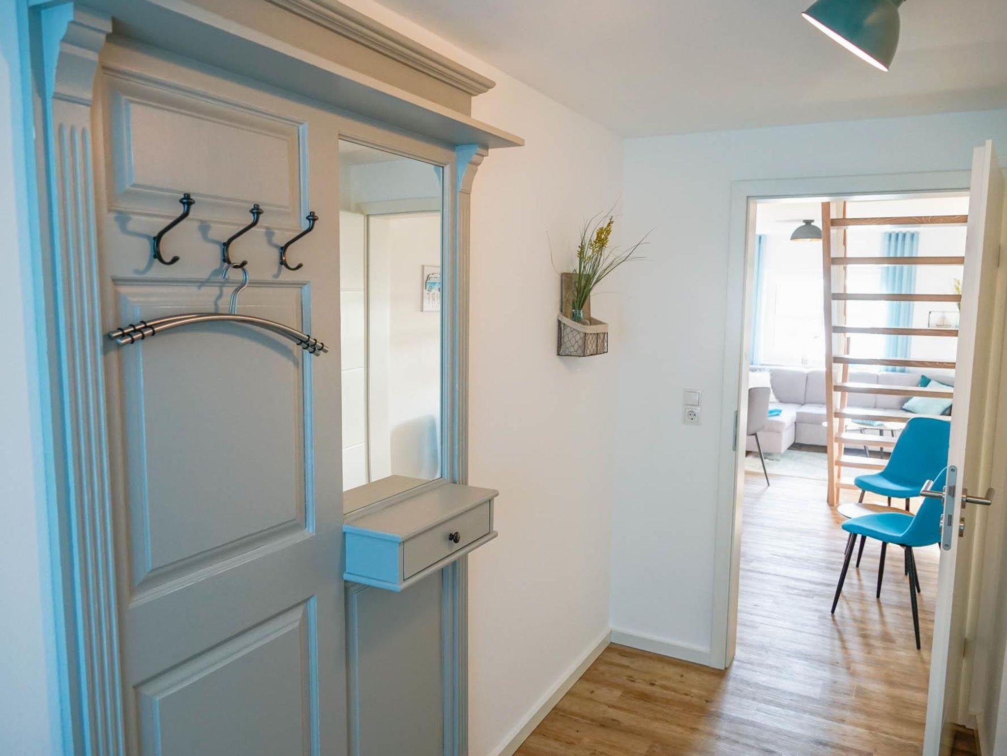 Der kleine Flur bevor man die eigentliche Wohnung betritt. Das Wetter hat es nicht hergegeben, aber im Sommer sitzt man eigentlich auf dem Parkplatz.