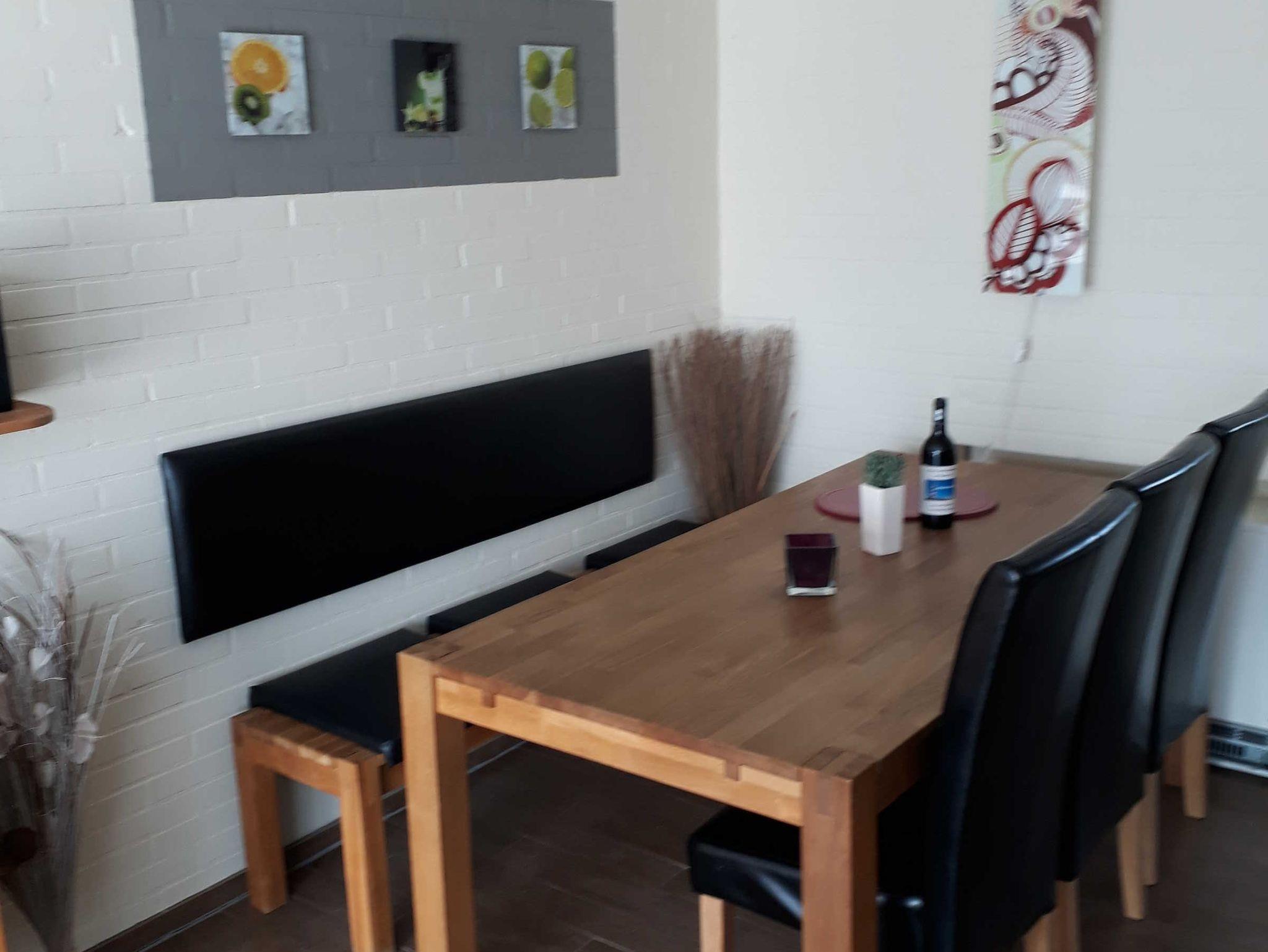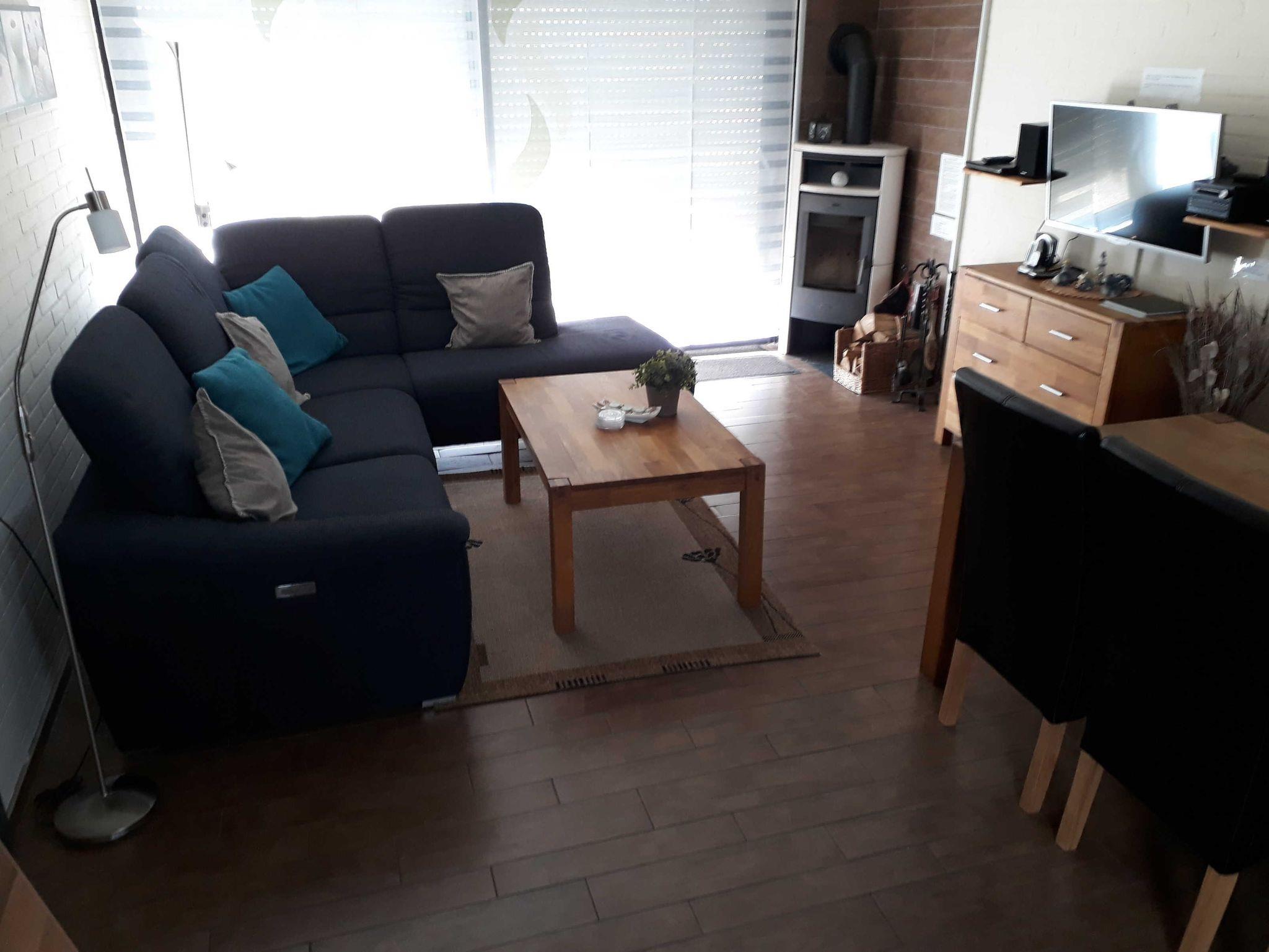 Ein Schlafzimmer mit Doppelbett 180 x 200, ein weiteres Schlafzimmer mit Etagenbett unten 90 x 200, oben 90 x 200, sowie ein seniorengerechtes Einzelbett 90 x 190 aber höher gebaut. Hier ist auch eine Kinderspielecke mit ausreichend verschiedenen Spielsachen und Büchern eingerichtet. Viel Stauraum für Ihre Sachen finden Sie im Schlafzimmerschrank. Ein Kinderreisebett und ein Hochstuhl auch zu Ihrer Verfügung. Die moderne Küche verfügt über einen Kühlschrank mit Gefrierfach, eine Mikrowelle mit Grill und Backofen, ein Touch - Ceranfeld, eine Spülmaschine und alle üblichen Kleinelektrogeräte. Ausreichend Geschirr, Töpfe Gläser, Besteck, sowie Kinderbesteck und Becher. Gemütlicher Essplatz für 5 Personen, Wohnzimmer mit gemütlicher Sitzecke, großem Flachbildschirm mit SAT-TV, Radio, MP3-Player, DVD-Player, kostenloser schneller DSL Anschluss, Kaminofen. Auf der südwärts angelegten Terrasse mit angrenzendem Rasen, auf dem sich ein Sandkasten und eine Schaukel befinden, kann man es sich unter der Markise gemütlich machen. Es sind ausreichend Stühle und Liegen, ein großer Tisch sowie ein Grill vorhanden. Im Gartenhaus ist ein Wäschetrockner untergebracht. Weiterhin befindet sich neben dem Gartenhaus kostenloses Brennholz für den gemütlichen Kaminofen. Eine Waschmaschine, sowie Staubsauger und Putzmittel sind selbstverständlich vor Ort.