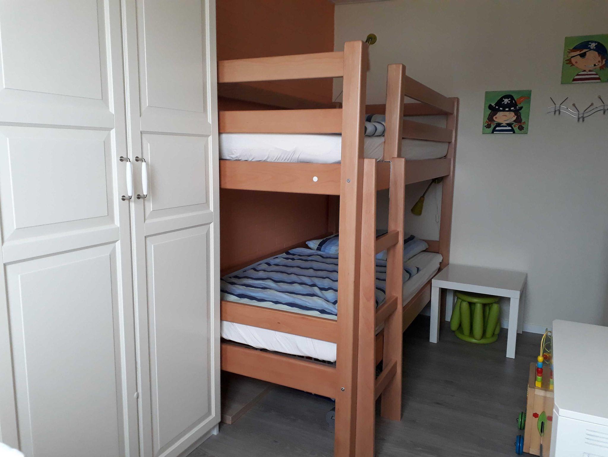 Ein Schlafzimmer mit Doppelbett 180 x 200, ein weiteres Schlafzimmer mit Etagenbett unten 90 x 200, oben 90 x 200, sowie ein seniorengerechtes Einzelbett 90 x 190 aber höher gebaut. Hier ist auch eine Kinderspielecke mit ausreichend verschiedenen Spielsachen und Büchern eingerichtet. Viel Stauraum für Ihre Sachen finden Sie im Schlafzimmerschrank. Hier steht auch ein Kinderreisebett und ein Hochstuhl zu Ihrer Verfügung. Die moderne Küche verfügt über Kühlschrank mit Gefrierfach, Mikrowelle mit Grill, Touch - Ceranfeld, Spülmaschine und alle üblichen Kleinelektrogeräte. Ausreichend Geschirr, Töpfe Gläser, Besteck, sowie Kinderbesteck und Becher. Gemütlicher Essplatz für 5 Personen, Wohnzimmer mit gemütlicher Sitzecke, großem Flachbildschirm SAT TV, Radio, MP 3 Player, DVD Player, kostenloser schneller DSL Anschluss, Kaminofen. Auf der südwärts angelegten Terrasse mit angrenzendem Rasen, auf dem sich ein Sandkasten und eine Schaukel befinden, kann man es sich unter der Markise recht gemütlich machen. Es sind ausreichend Stühle und Liegen, ein großer Tisch sowie ein Grill vorhanden. Im Gartenhaus ist ein Wäschetrockner untergebracht. Weiterhin befindet sich neben dem Gartenhaus kostenloses Brennholz für den gemütlichen Kaminofen. Eine Waschmaschine, sowie Staubsauger und Putzmittel sind selbstverständlich vor Ort.