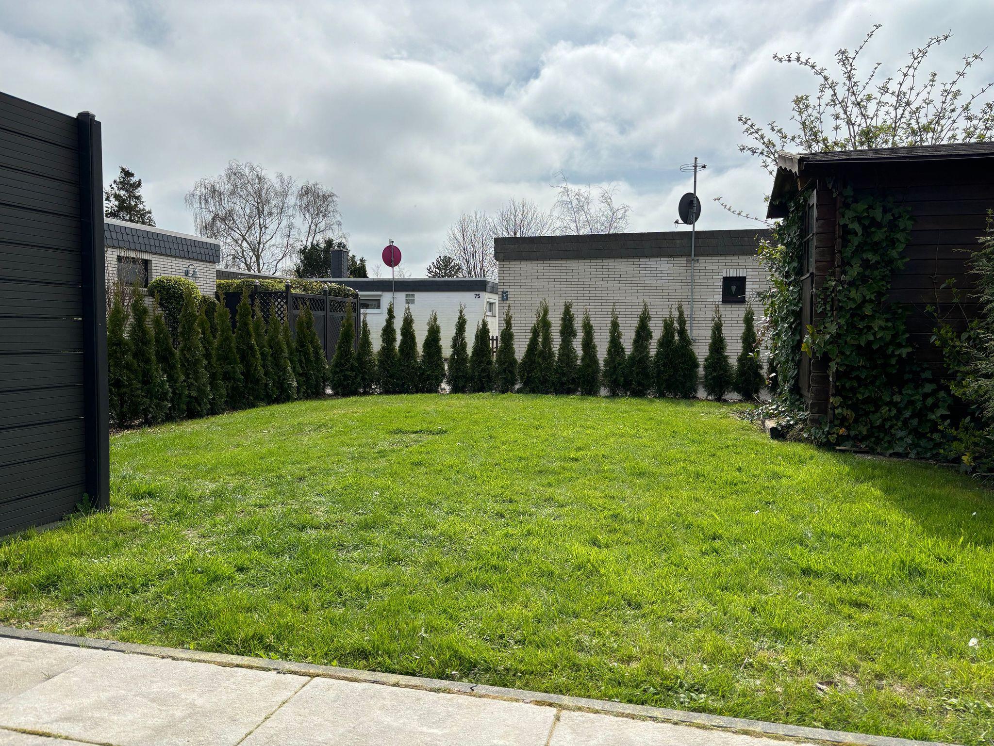 Der Garten ist nach Süden ausgerichtet und neu eingefriedet. Das Haus liegt in einer Sackgasse und damit sehr ruhig. Bei Bedarf spendet eine Markise Schatten.