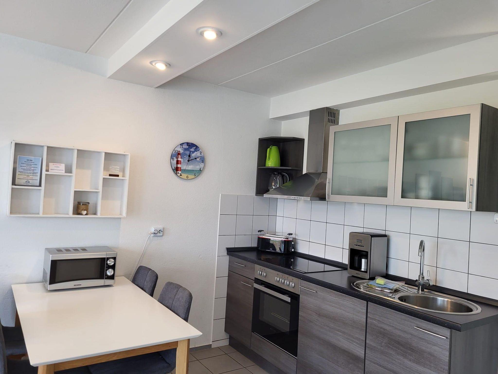 Das moderne Badezimmer im Erdgeschoss ist mit einer ebenerdigen Dusche ausgestattet und sorgt für Komfort. Auf der kleinen Terrasse mit Gartenmöbeln können Sie in Ruhe die frische Luft genießen. Das Seeperle ist ein Nichtraucherhaus und besonders familienfreundlich, was es zu einer idealen Unterkunft für Eltern mit Kindern macht. Auch Ihr Hund ist hier herzlich willkommen.