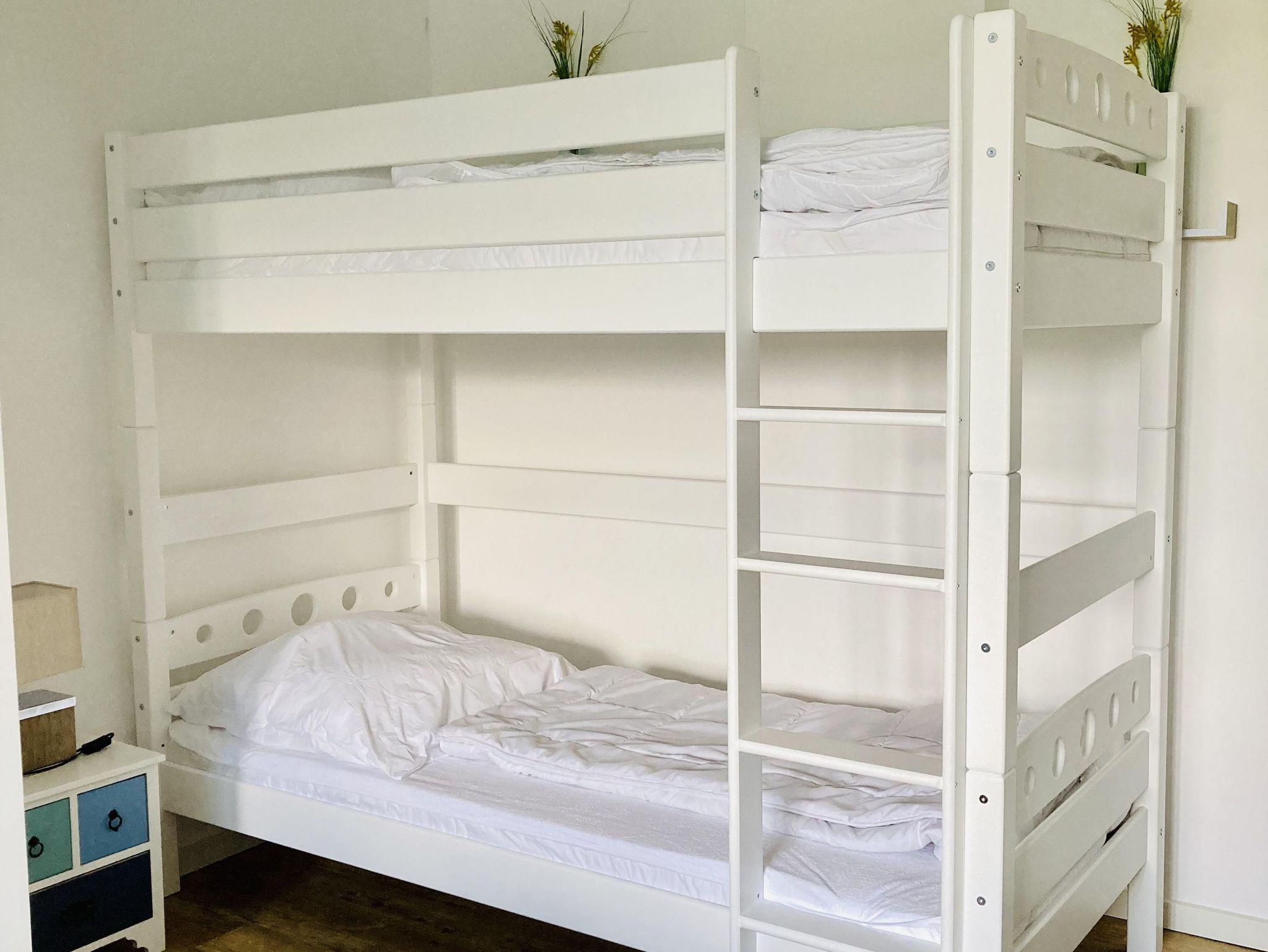 • 2 Schlafzimmer: ein Zimmer mit Doppelbett und Etagenbett, ein Zimmer mit 2 Einzelbetten, Bettwäsche auf Wunsch (Fenster mit Plissees)