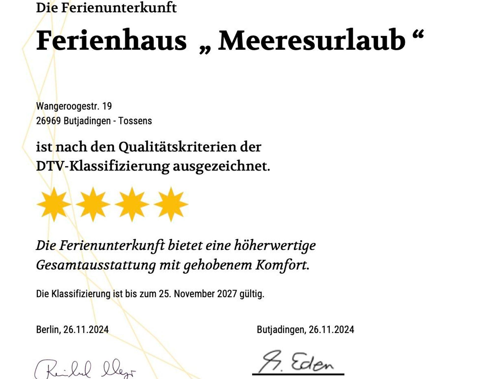 Das Ferienhaus wurde vom Deutschen Tourismusverband mit 4 Sternen ausgezeichnet!