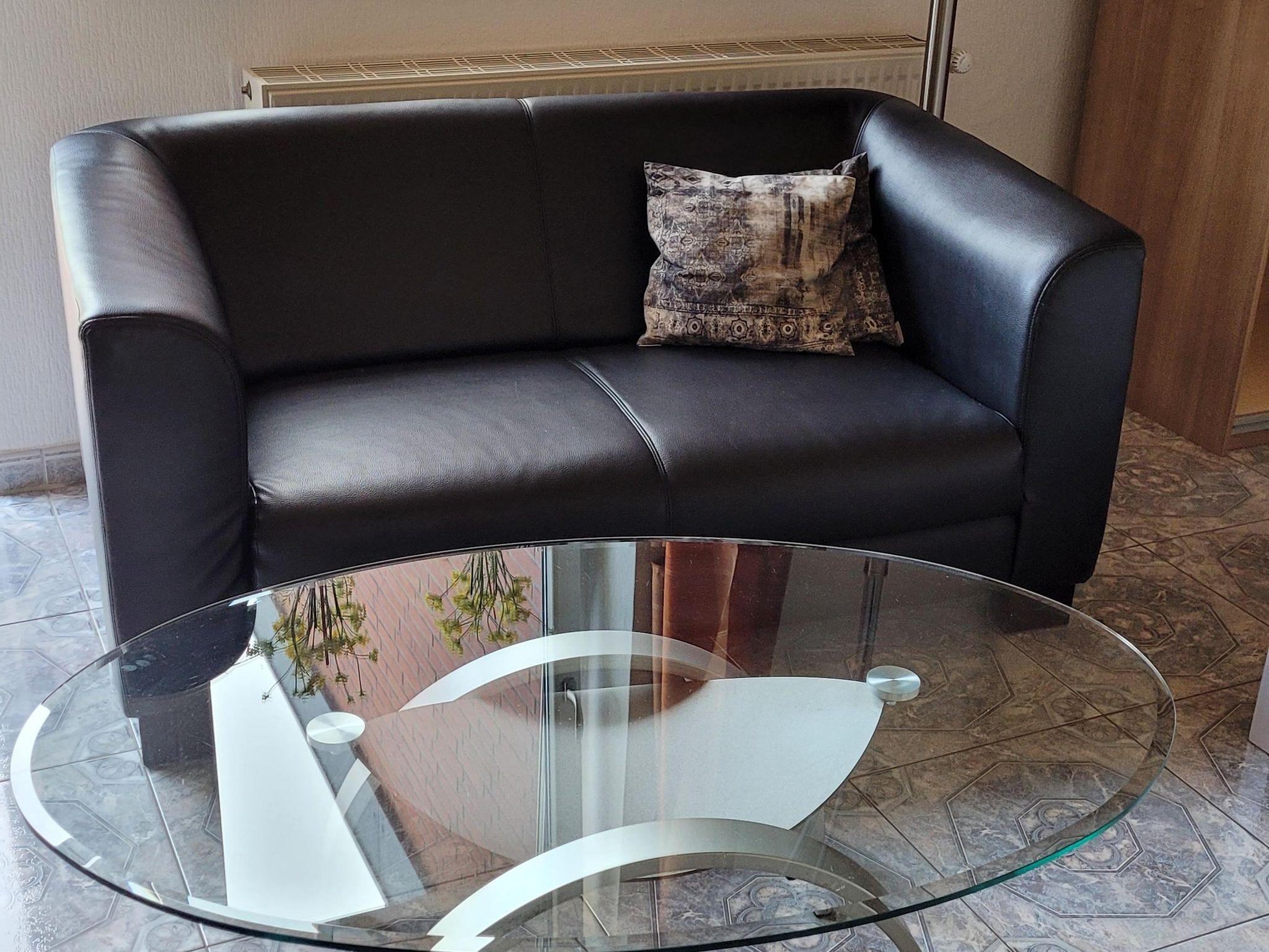 Das gemütliche und geräumige Wohn-/Schlafzimmer verfügt über eine Ledergarnitur, Wohnzimmerschrank, Fernseher mit digitalem Satellitenempfang, Stereoanlage sowie einem Doppelbett, Nachttische und Kleiderschrank.