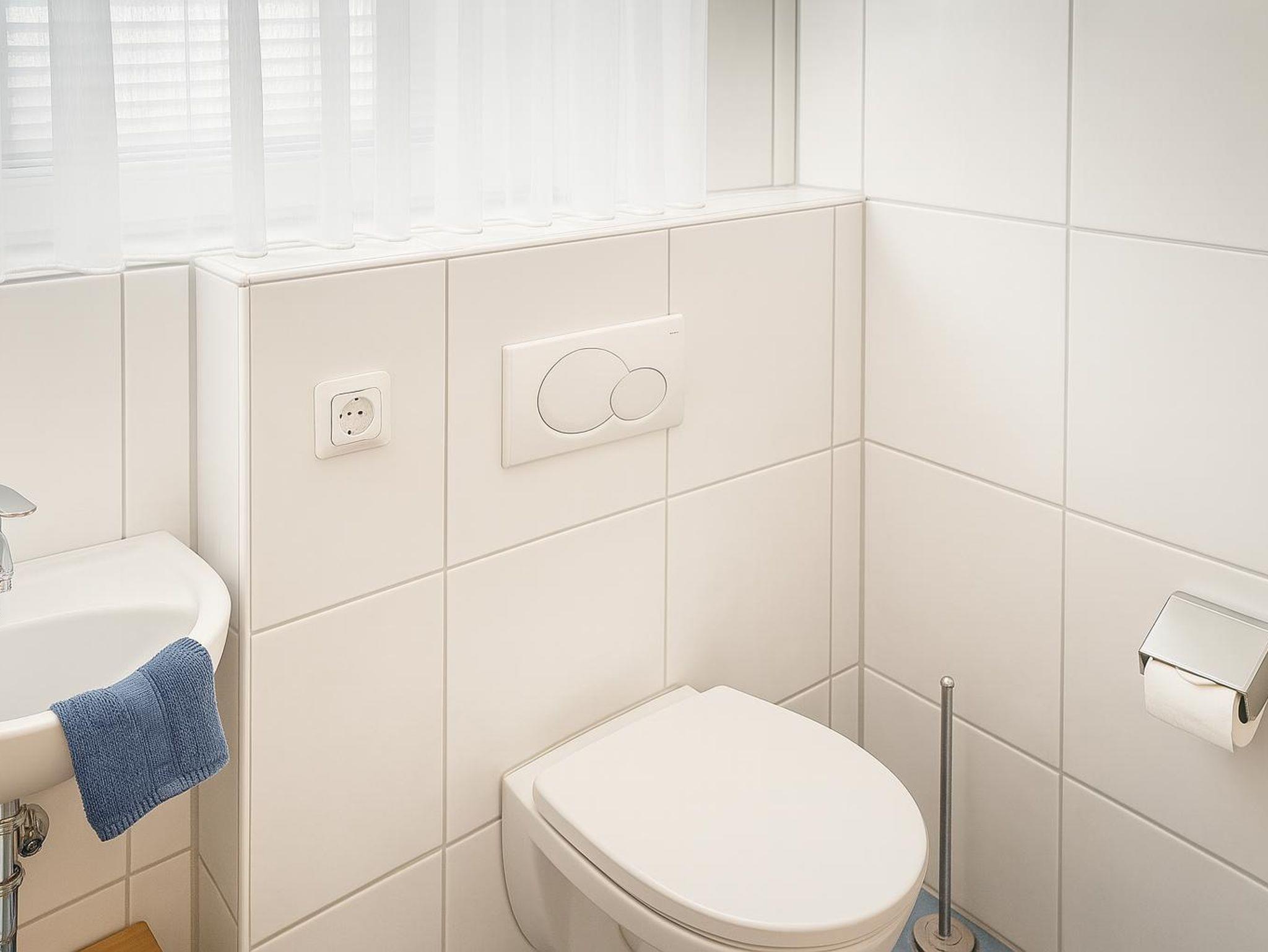 Die Ferienwohnung verfügt über einen eigenen Gartenanteil mit Terrasse nebst Gartenmöbeln, der vom Rest des Gartens abgegrenzt ist. So kann man seinen Nachmittagskaffee auch ganz in Ruhe in der Sonne genießen. Aber auch der große Garten mit kleinem Spielplatz ist für die Gäste mitnutzbar.Die Küche ist voll ausgestattet mit Herd, Backofen, Dunstabzug, großem Gefrierschrank, Kühlschrank und Spülmaschine. In den Schränken befindet sich alles von elektrischem Dosenöffner bis zum Waffeleisen. Auch eine Grundausstattung von Kaffeefilter bis Salz und Pfeffer ist (sofern nicht vom Vormieter verbraucht) vorhanden. Vom Esstisch aus hat man einen herrlichen Blick auf den Deich.Das Badezimmer ist ausgestattet mit Dusche, WC und Waschbecken. Außerdem befindet sich hier die Waschmaschine und der Wäschetrockner. Waschpulver ist (sofern nicht vom Vormieter verbraucht) ebenfalls vorhanden. Im Bad ist auch ein Fön, ein Bügeleisen, ein Staubsauger sowie dieverse Putzmittel verstaut.
