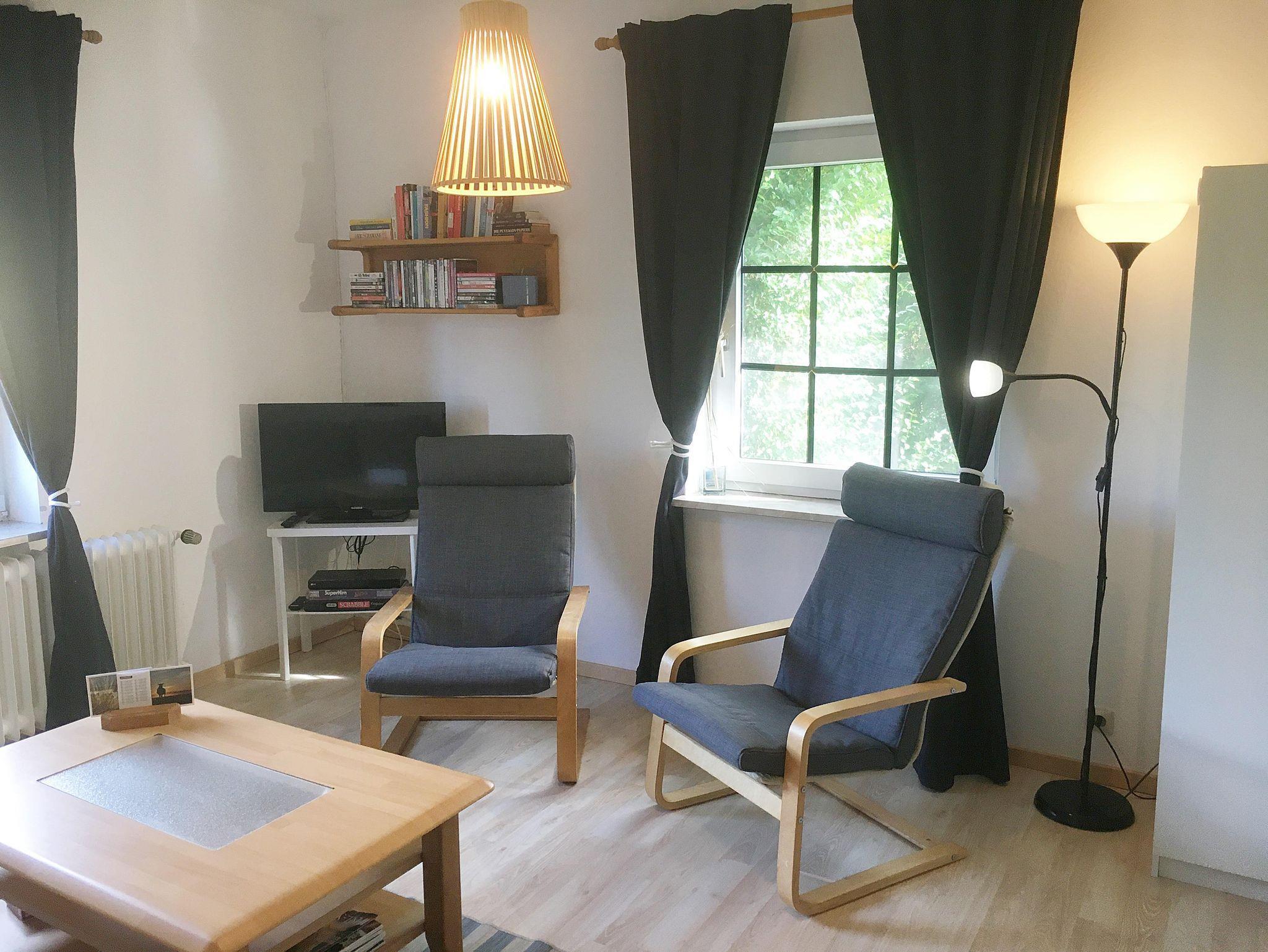 Die kleine Ferienwohnung ist komplett ausgestattet mit allem, was man benötigt und besteht aus einem Wohn-/Schlafraum mit Schlafcouch zum Ausziehen und TV und Radio, einer Küche (Kaffemaschine, Wasserkocher, Herd, Kühlschrank) sowie einem Bad mit Dusche und WC. Auf dem großen Gartengrundstück haben Sie außerdem einen separaten Bereich, wo Sie entspannen, grillen und den Tag ausklingen lassen können. Ein kostenfreier Parkplatz befindet sich direkt am Haus. Eine überdachte Unterstellmöglichkeit für Fahrräder ist ebenso vorhanden.