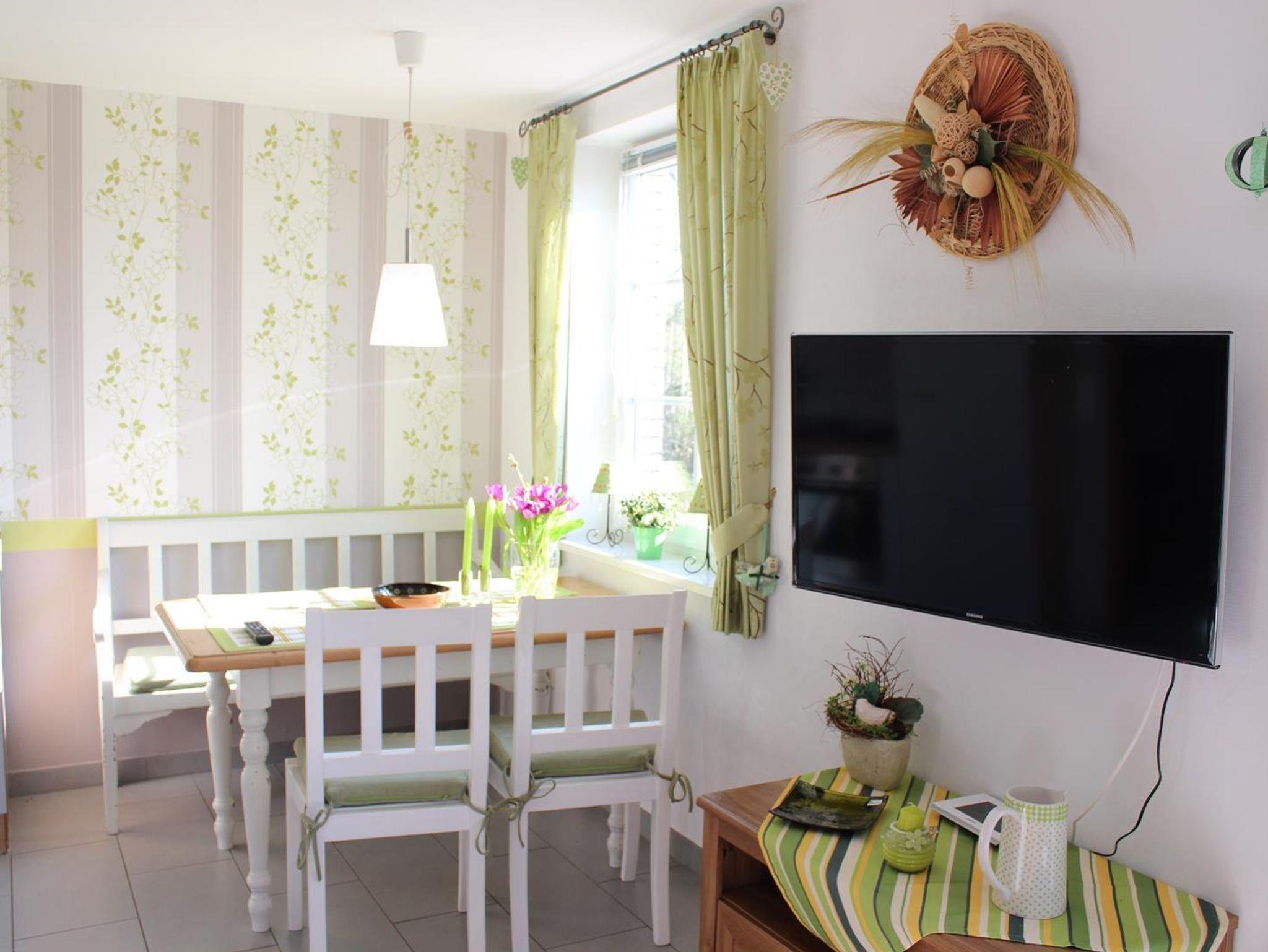 Unsere ca. 80 qm große, liebevoll gestaltete Nichtraucher-Ferienwohnung ist ruhig mit einem riesigen Gartengrundstück in Waddens gelegen, ca. 4 km von Burhave entfernt. Sie ist ideal für 4 Personen und liegt unmittelbar am Nationalpark, direkt am Deich. Die Ferienwohnung hat zwei Doppelschlafzimmer, eine komplett eingerichtete Küchenzeile mit Sitzecke kombiniert mit dem Wohnzimmer (Radio, TV) mit gemütlicher Sitzecke, die für eine Person ausziehbar ist. Das Badezimmer ist mit Dusche/WC ausgestattet und es gibt einen Extraraum für Regensachen etc. Fahrräder stehen den Gästen kostenlos zur Verfügung. Bettwäsche und Handtücher sind inklusive.