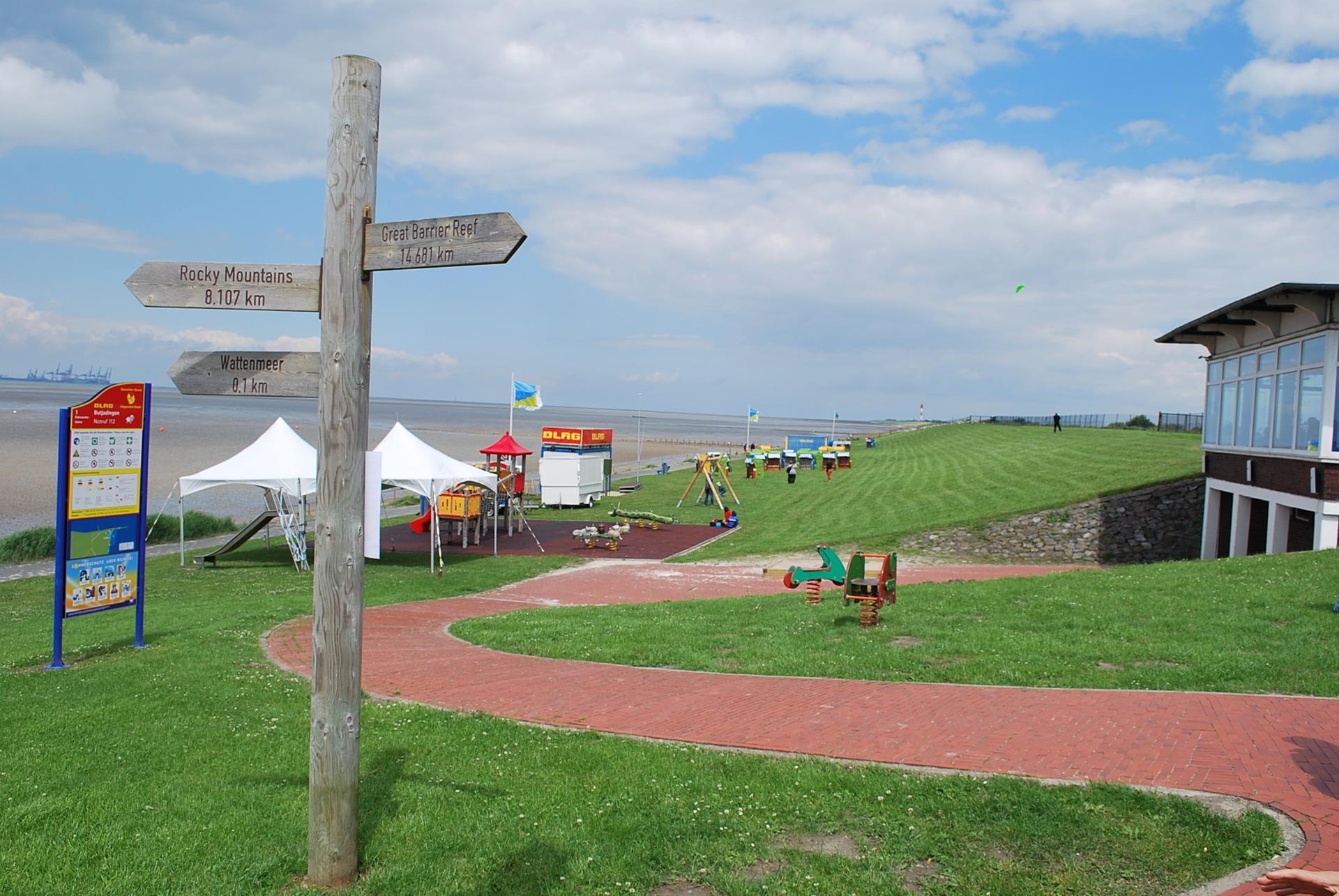 Strandnahe Ferienwohnung mit großem Garten und WLAN in Butjadingen-Eckwarderhörn, nur 50 Meter zur Nordsee.