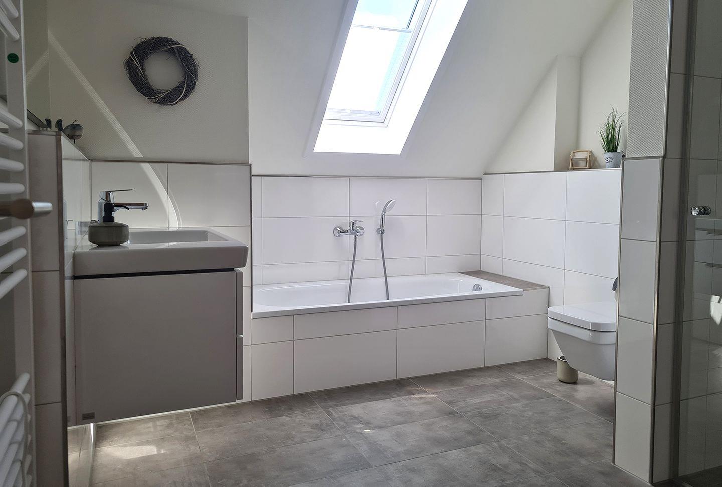 - 1 großes Badezimmer mit Badewanne, Dusche und Sauna