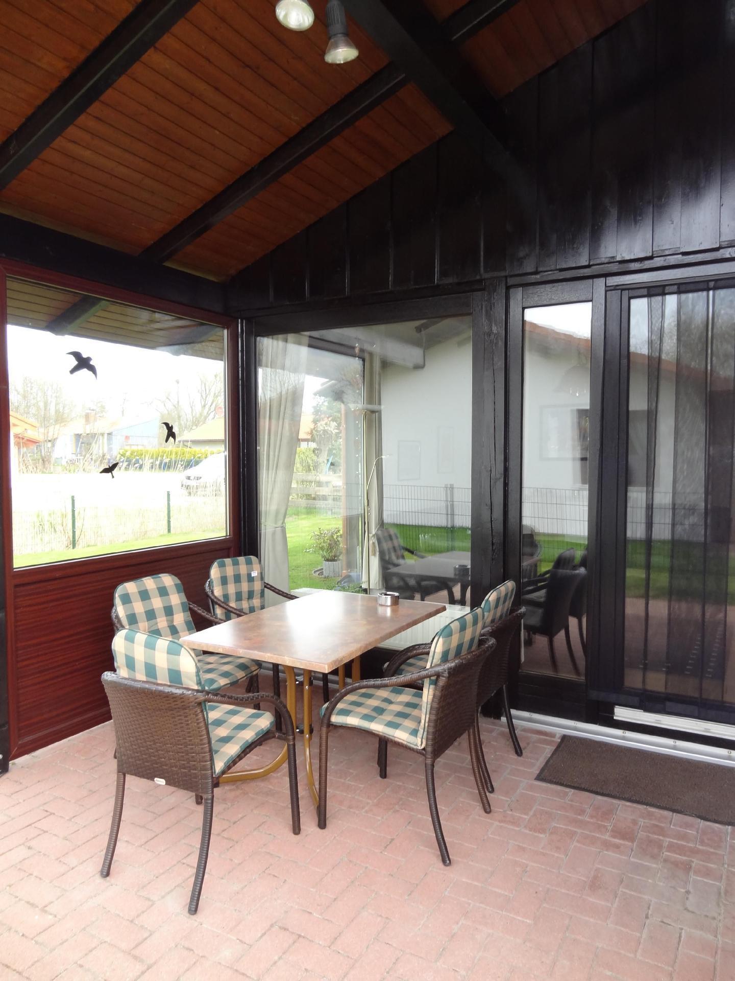 Das hochwertig ausgestattete und eingezäunte Ferienhaus hat eine Wohnfläche von ca. 62 m² und besteht aus zwei Schlafzimmern, einer ausgestatteten Küche mit Spülmaschine und einem Wohnzimmer mit Sitzgarnitur und Fernseher. Ein Schlafzimmer hat ein Doppelbett und das andere Schlafzimmer drei Einzelbetten, davon ein Hochbett, Kinderbett und Hochstuhl für Kleinkind sind vorhanden. An den Schlafzimmerfenstern sind Rolläden angebracht. Das Bad hat Dusche und WC. Terrassenmöbel und Liegen stehen zu ihrer Verfügung. Im Abstellraum finden Sie eine Waschmaschine vor.