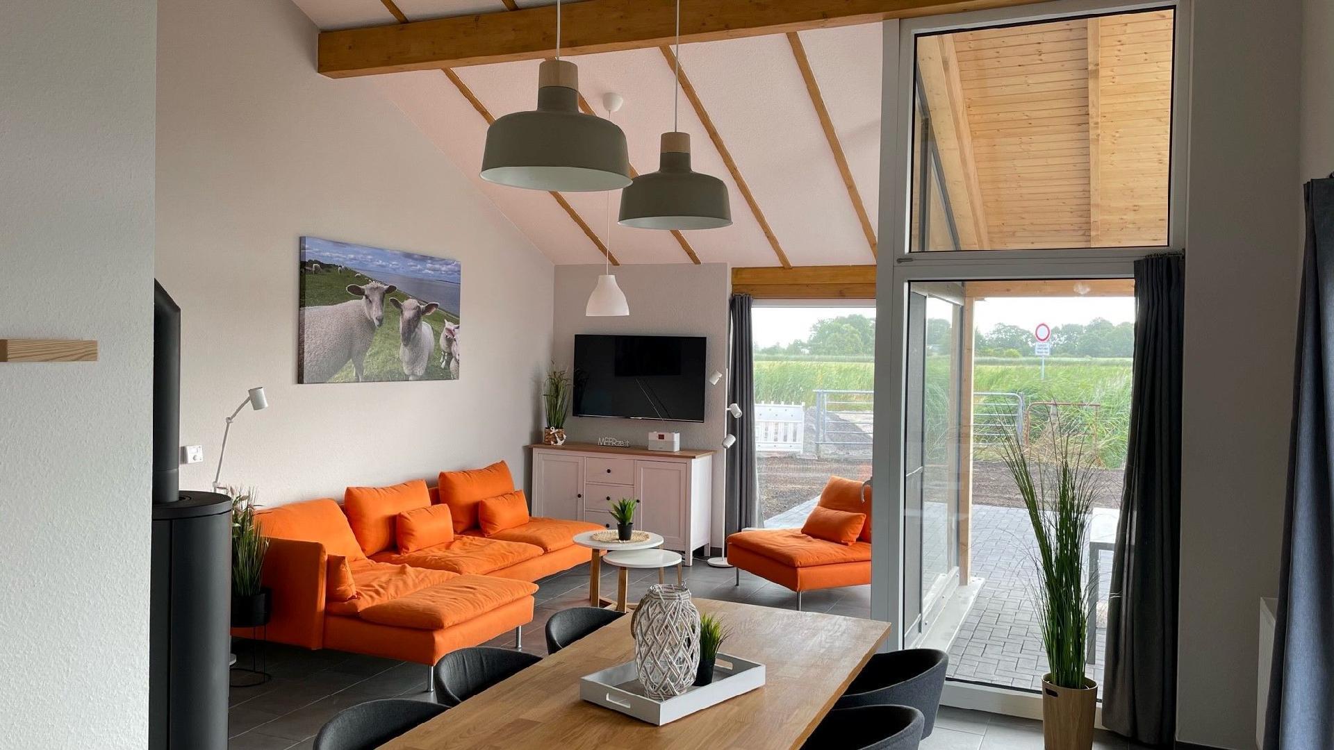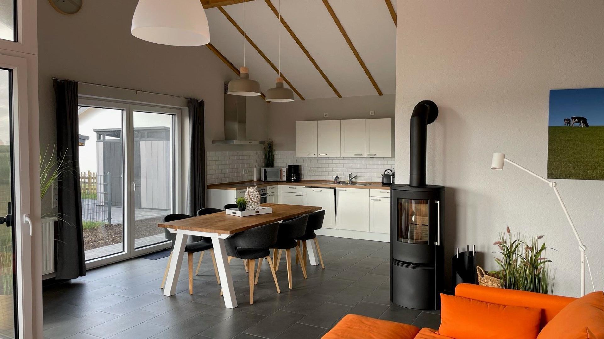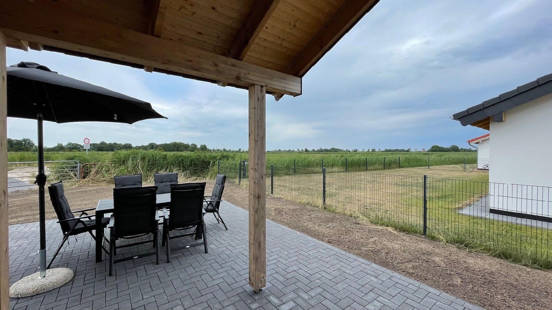 Neubau in Randlage mit Blick ins Landschaftsschutzgebiet, 90 qm Wohnfläche, Erstbezug August 2022, Haustiere erlaubt (max. 2), WLAN, Kaminofen, massiver Abstellraum ca. 10 qm unterm Carport, direkt Nordsee im Feriendorf Eckwarderhörne: G 1