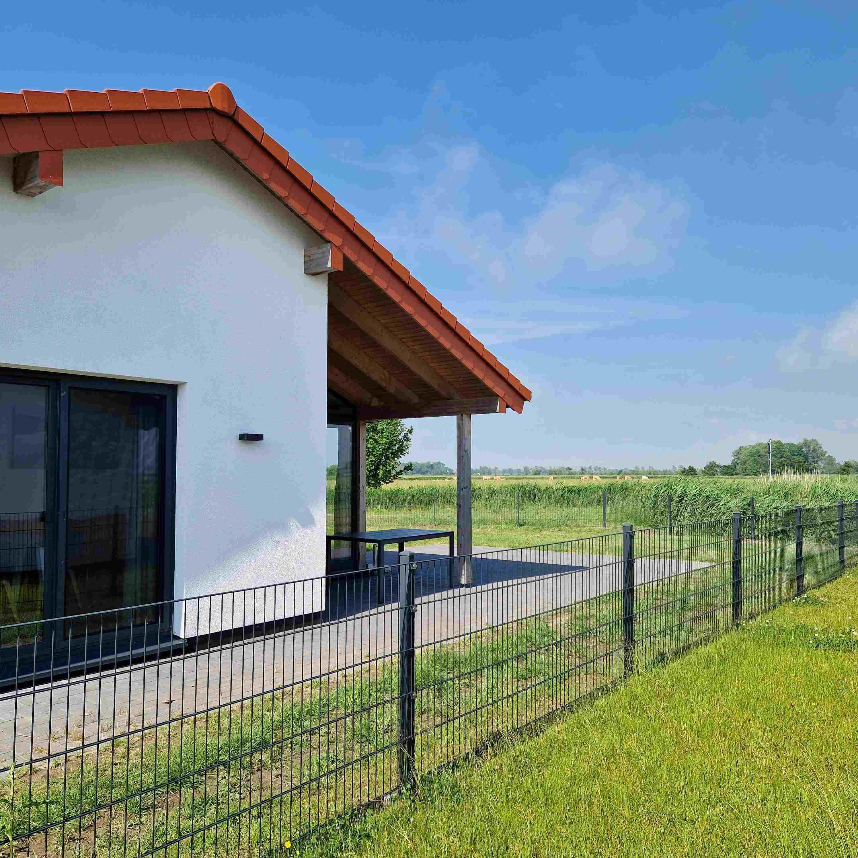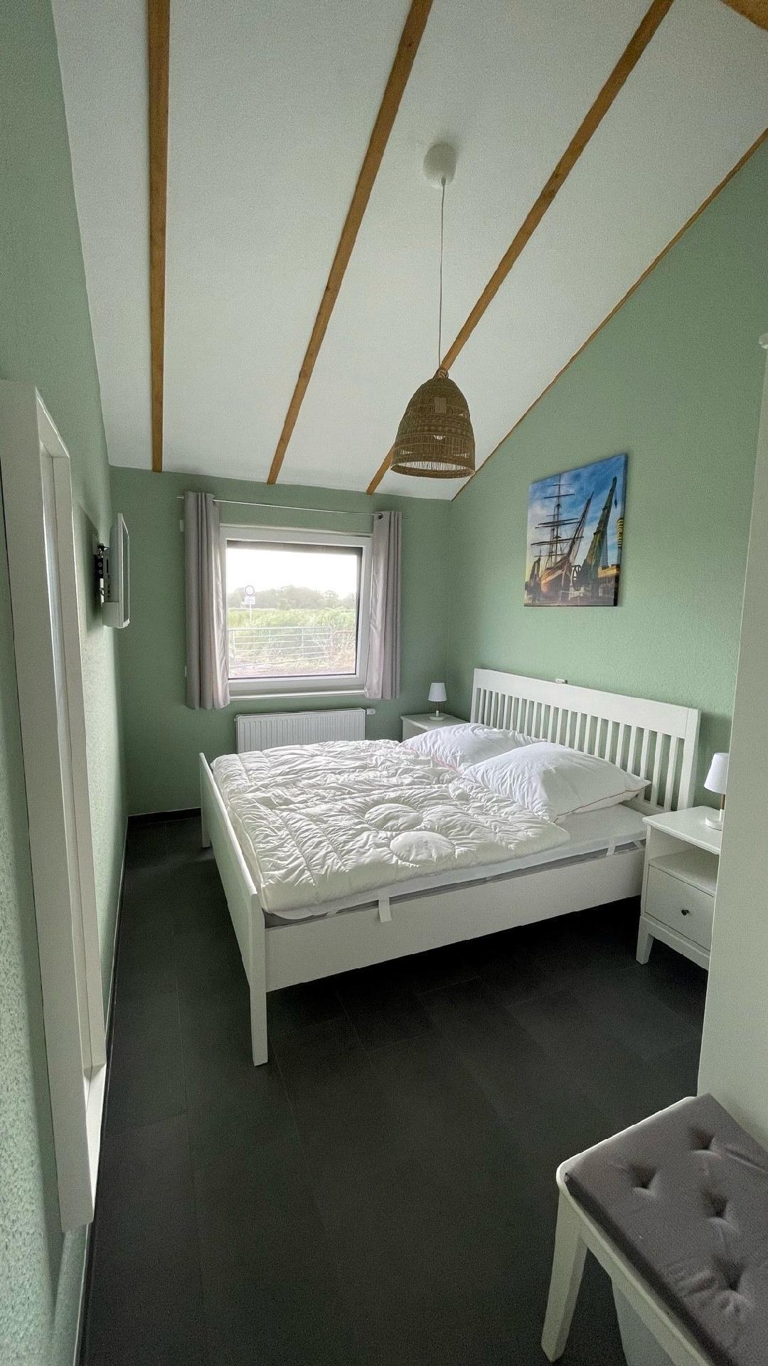 Neubau Haus G 1 eingezäunt in Randlage mit Blick ins Landschaftsschutzgebiet, 90 qm Wohnfläche, Erstbezug August 2022, Haustiere erlaubt (max. 2),kostenloses WLAN im Haus, Kaminofen, elektrische Rollläden in den 3 Schlafzimmern, komplett Fliegengitter, alle Räume gefliest, 2 Bäder mit ebenerdiger Dusche, 1 x Wand-Handtuchheizkörper, TV im Wohnzimmer und in den 3 Schlafzimmern, Kaminofen, Waschmaschine, massiver Abstellraum ca. 10 qm unterm CarportFür 6 Personen mit 3 Schlafzimmern und 2 VollbädernEigenes 448 qm großes Grundstück• 3 Schlafzimmer (2 x Doppelbetten 1,80m x 2,00m und 1x Doppelbett 1,60m x 2,00m)• 1 großzügig geschnittenes Wohnzimmer mit großen bodentiefen Fensterflächen• komplett eingerichtete Einbauküche mit Geschirrspüler, Mikrowelle und separater GefrierschrankAbschließbarer Abstellraum mit ca. 10 qm unterm Carport• 1 Abstellraum / 1 Flur• 2 Bäder mit ebenerdiger Dusche und 1 x Wand-Handtuchheizkörper• Satelliten TV, 1x Wohnzimmer und 3 x Schlafzimmer• überdachte Sonnenterrasse mit Gartenmöbeln und Weber-Holzkohlegrill• Außenwasserhahn• Carport + 1 weiterer ParkplatzDas Haus liegt im Feriendorf Eckwarderhörne in unmittelbarer Nähe zum Deich, zum Fähranleger (u.a. Personen-/Fahrradfähre nach Wilhelmshaven) und einen zum Feriendorf gehörenden 50'000 m2 grosser Binnensee (mit einer ca. 500 m2 grossen Sandliegewiese direkt am Binnensee, Schwimmponton und Stegen). Zum Strandbad Eckwarderhörne mit der Strandhalle, Leuchtturm, Fähranleger und Ausgangspunkt für geführte Wattwanderungen sind es etwa 800 m.Im idyllisch und abseits vom Verkehrsgeschehen liegenden Feriendorf gibt es den Deichgasthof "To´n Spieker", Fahrradverleih, Kinderspielplatz und eine 1000 m2 große Spielwiese mit Beachvolleyballfeld, Badmintonfeld, Baskettballkorb, Aussen-Tischtennisplatte, Sandkiste und Schaukeln.