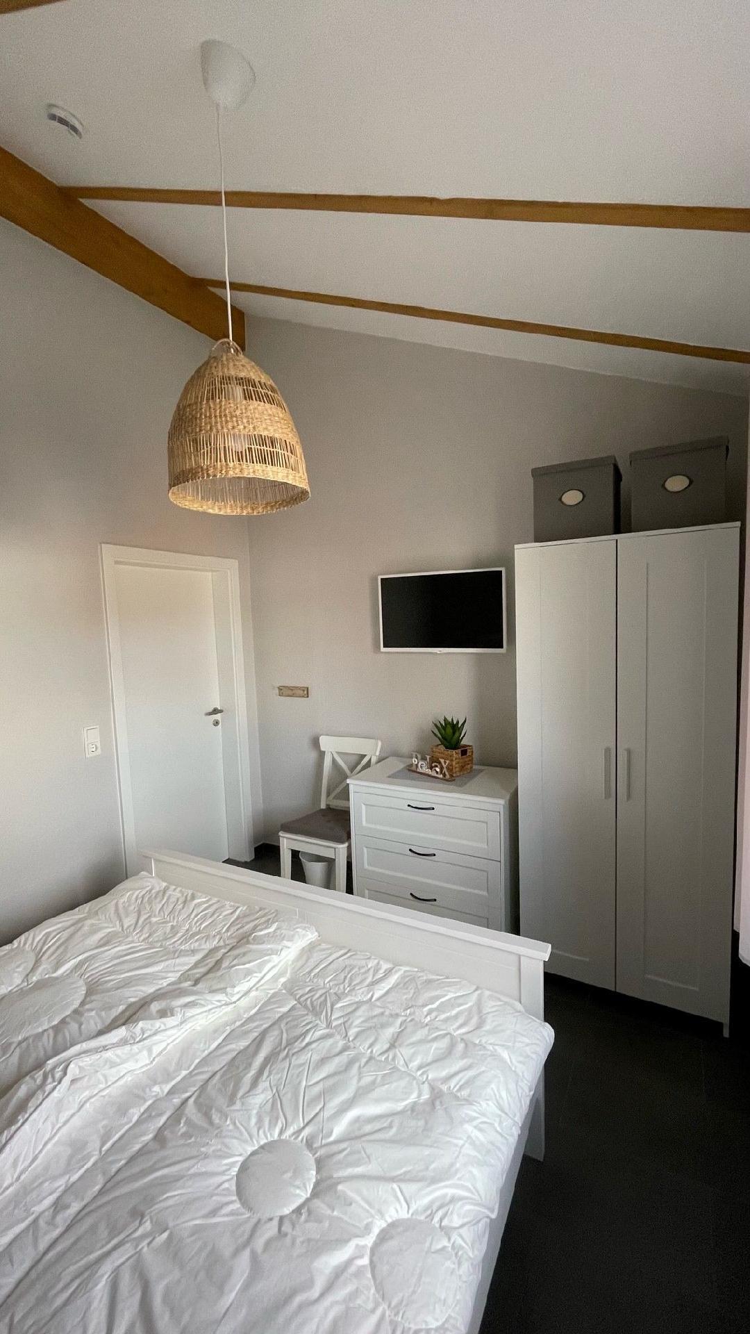 Kurzbeschreibung 1Anzahl Küchen : 1Schlafzimmer 1Sonstige Schlafzimmereinrichtung : elektrische Rollläden, Fliegengitter, Fernseher, Kleiderschrank, Nachttischkommoden, LeselampenSchlafzimmer 2Sonstige Schlafzimmereinrichtung : elektrische Rollläden, Fliegengitter, Fernseher, 2x Einzelbetten 0,90 x 2,00 m)Badezimmer 1Sonstige Badezimmereinrichtung : ebenerdige Dusche, Fußbodenerwärmung