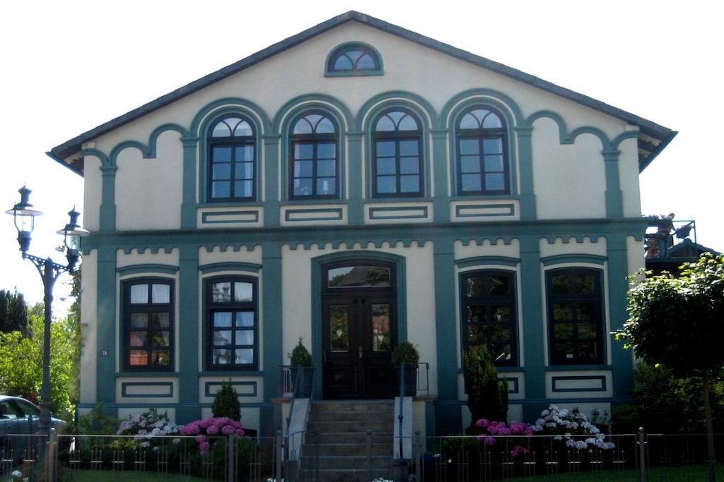 Die 76qm große Ferienwohnung im 1.OG ist direkt im Ortskern, gegenüber der Kirche gelegen. Sie verfügt über ein Bad mit Dusche, ein Schlafzimmer mit Doppelbett (Gitterbettchen), eine komplett eingerichtete Küche mit Balkon und ein großes Wohnzimmer, TV und CD und einer gemütlichen Essecke. Gaststätten und Restaurants befinden sich gleich in der Nachbarschaft. Sämtliche Einkaufsmöglichkeiten sind ebenfalls in unmittelbarer Nähe. Der Strand des Nordseebades und auch die Nordseelagune die Spiel- und Spaßmöglichkeiten unabhängig von den Gezeiten für jung und alt bietet sind in ca. 10-15 min. zu Fuß zu erreichen.