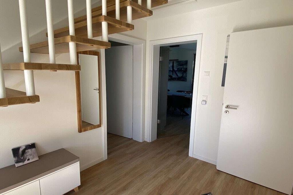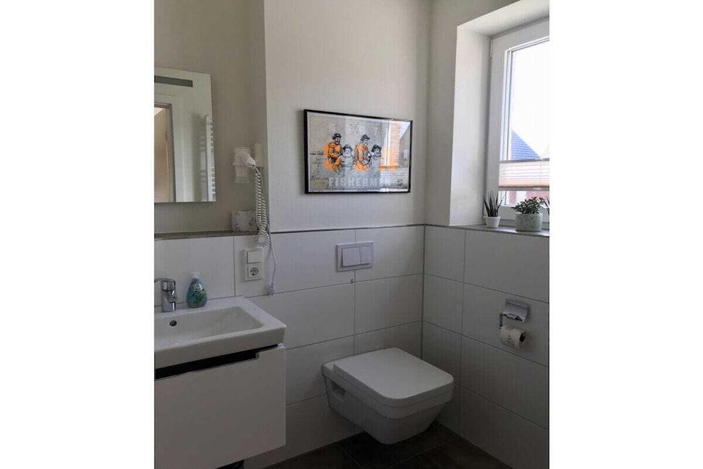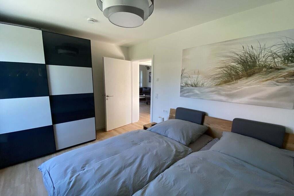 Ankerherz ist eine neue Doppelhaushälfte am Ende der Siedlung „Am Kutterhafen“ Durch die Anbindung des Hauses zu unserem eigenen Grundstück hat Ankerherz den großen Vorteil, dass der Weg zum Hafen nur einen Katzensprung entfernt ist, der Hafen ist somit nur 50 Meter entfernt. Ankerherz ist seit April 2022 in Vermietung. Das Haus verfügt über 3 Schlafzimmer , 2 Bäder, eine Sauna, eine Küche und einen großen Wohn- und Essbereich mit Kamin. Das Schlafzimmer im Erdgeschoss verfügt über ein großes Doppelbett, außerdem gibt es ein großzügiges ebenerdiges Duschbad und einen Abstellraum mit Waschmaschine. Die beiden Schlafzimmer im Obergeschoss verfügen über ein Doppelbett und 2 Einzelbetten . Das Badezimmer hier oben wartet auf mit ebenerdiger Dusche, Badewanne und einer Sauna. Es gibt einen sehr großzügigen und gemütlichen Wohn- und Essbereich. Sie finden in allen Schlafzimmern und im Wohnbereich Sat- TV, Das Haus hat einen Glasfaseranschluss und alle Fernseher sind mit dem Internet verbunden . Die Küche ist vollumfänglich ausgestattet. Großzügige Parkplätze für 3 Autos, Nutzung der„Wallbox“ direkt vor der Haustür Unterstellmöglichkeiten für Fahrräder, Kinderwagen etc. Überdachte Terrasse mit Sommergestühl und Grill Das Haus hat in allen Schlafzimmern, Badezimmern und Terassentür Fliegen- und Mückenschutz .