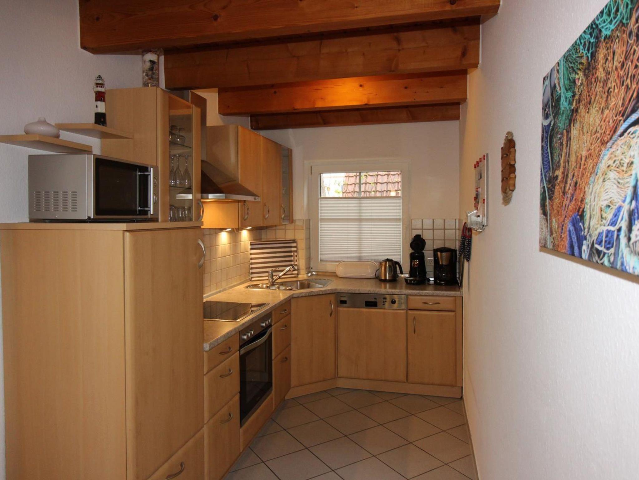 Im Erdgeschoss befindet sich eine offene Küche mit allen erforderlichen Elektrogeräten.