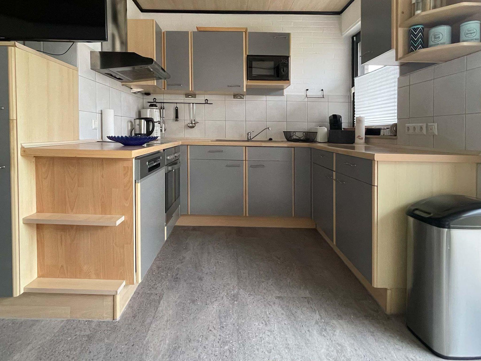 Das Ferienhaus verfügt über eine moderne, und helle Einrichtung, es sind keine Treppen vorhanden, es gibt eine große Dusche mit Regenbrause im 2018 sanierten Badezimmer. Die Betten sind 160 x 200 sowie 180 x 200cm groß. Nichtraucherhaus mit W-Lan, Geschirrspüäer und Waschmaschine und Kamin, sowohl innen als auch außen. Große Terrasse mit Blick auf einen See!