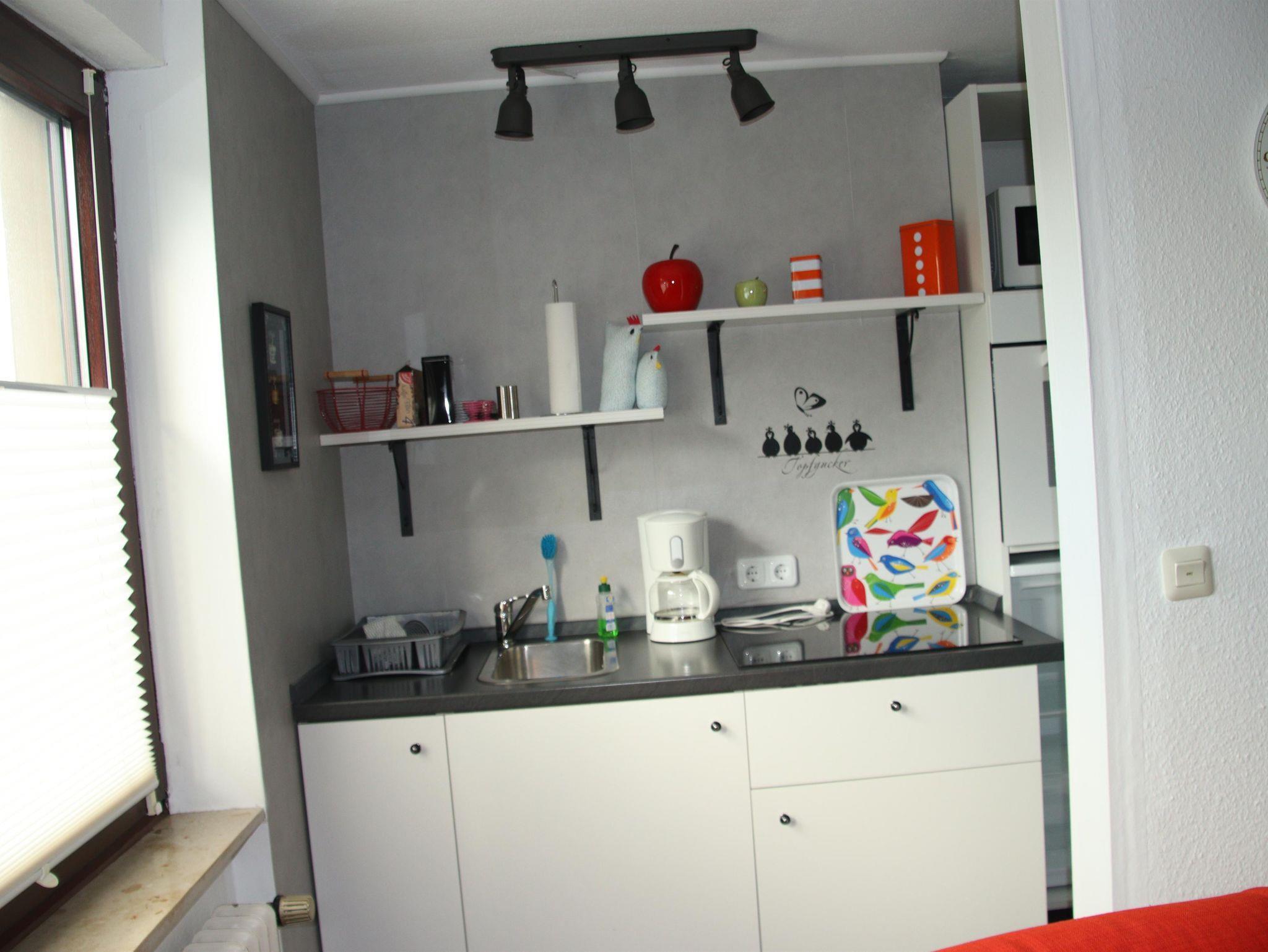 Willkommen in Ihrer Ferienwohnung Roter Sand. Diese Wohnung im 1. Obergeschoss bietet bis zu zwei Personen den Komfort, den es braucht für einen gemütlichen Urlaub. Im Schlafzimmer mit Doppelbett finden Sie Ruhe, das Bad mit Dusche und WC bietet genügend Platz. In der gut ausgestatteten Küche können Sie Ihr leckeres Frühstück, sowie Ihr Lieblingsessen zubereiten und im angrenzenden Ess- und Wohnbereich die Mahlzeiten und schöne Stunden genießen. Das WLAN ist im Preis inbegriffen. Ihr Haustier ist ebenfalls herzlich willkommen. Es handelt sich um eine Nichtraucherwohnung! Eine überdachte Terrasse am Haus bietet Ihnen Platz für gemütliche Abende. Genießen Sie Ihren Urlaub in ruhiger Lage und nahe am Strand!
