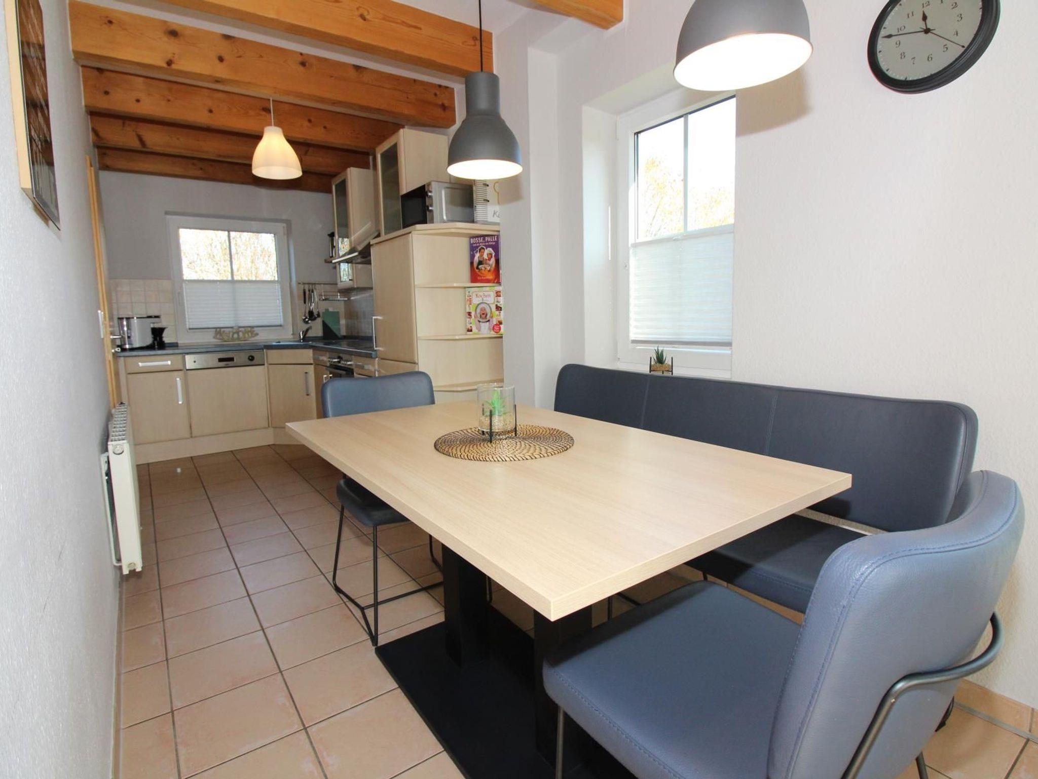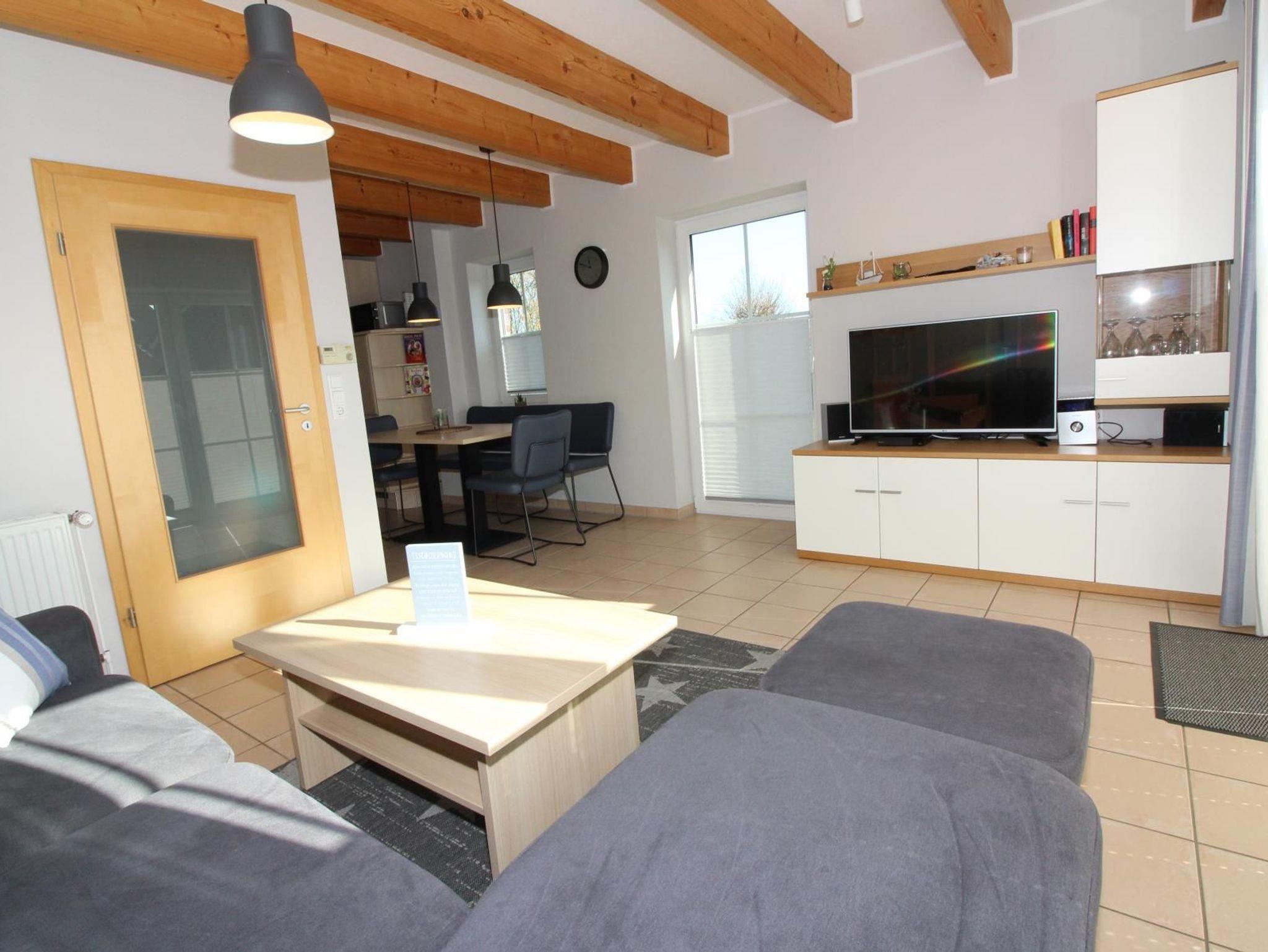 ImErdgeschoss befinden sich ein großzügiger Wohn-/Essbereich mit modernen Möbeln und einem bequemen Sofa. Hier gibt es einen 42“-Fernseher und eine kleine Stereoanlage mit Bluetooth-Schnittstelle.