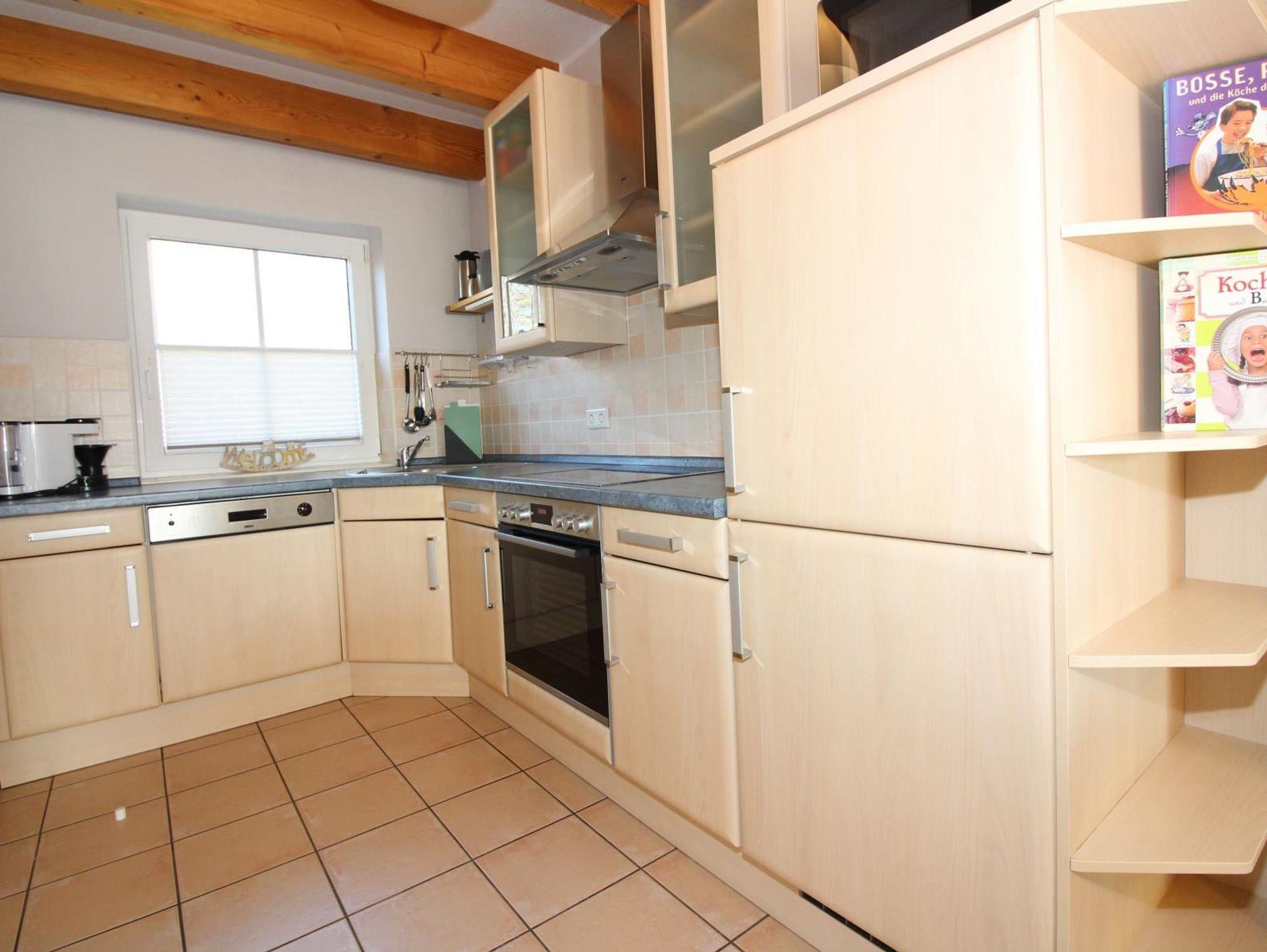 Die Küche ist mit Einbauherd und Glaskeramikkochfeld, Geschirrspüler, Kühl-/ Gefrierkombination, Mikrowelle, Senseo-Switch-Kaffeemaschine ausgestattet. In dieser Etage befindet sich ein WC mit Dusche.