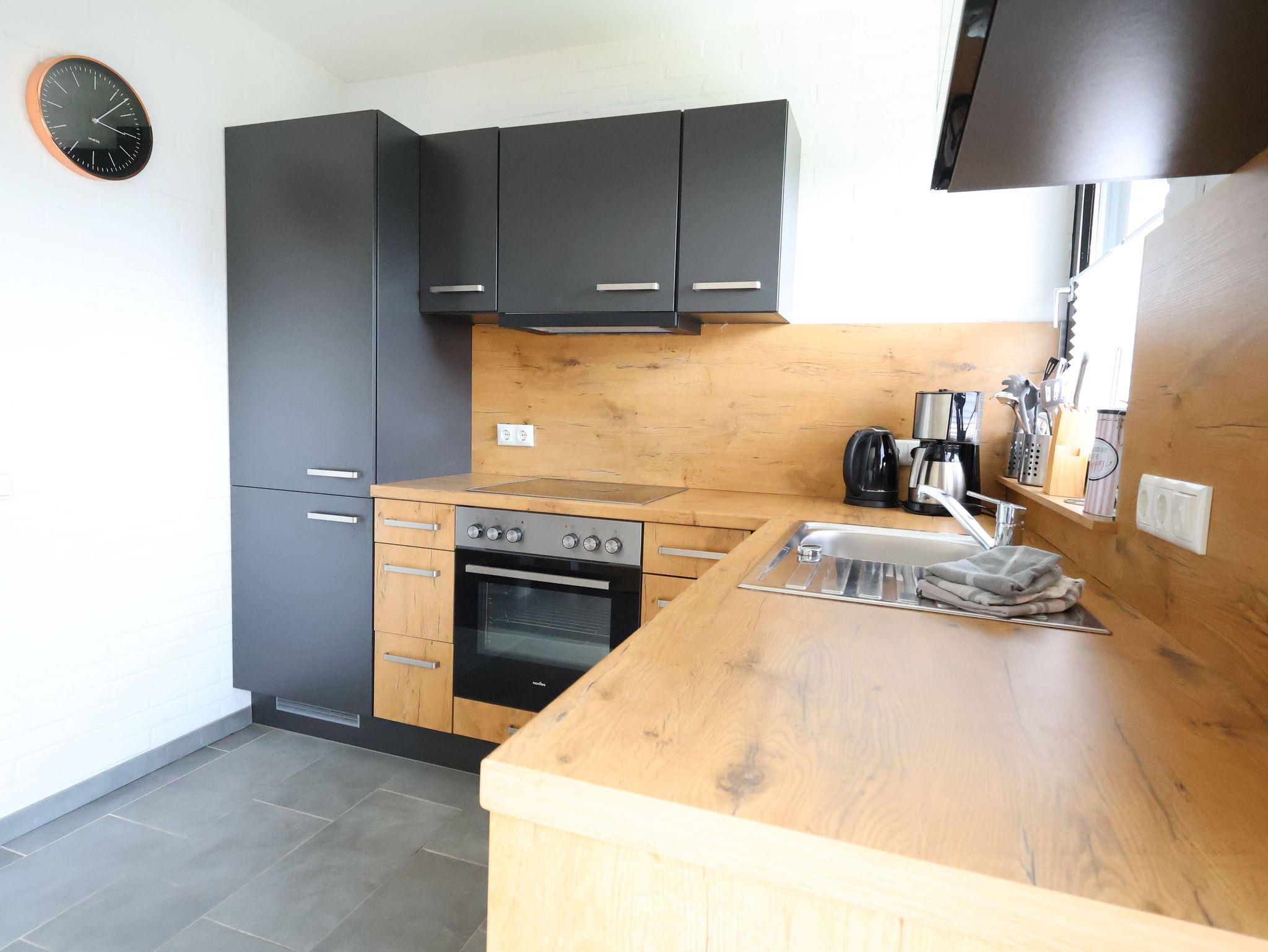 Neben einer gut eingerichteten und neuen Küche mit Geschirrspüler, Kühlschrank mit Eisfach, Ofen, Mikrowelle und Ceranfeld, erwarten Sie zusätzlich ein großer Flachbildfernseher im Wohnbereich, Internetzugang, ein großes Sofa, sowie ein Parkplatz. Eine Zentralheizung erwärmt das gesamte, durchgefließte Haus. Zum Garten hin gelegen ist eine ca. 30 qm² große Terrasse vom Wohnzimmer aus begehbar. Dort stehen neben Sitz- und Liegemöbeln auch ein Grill sowie ein Sonnenschirm im windgeschützten Außenbereich und eine ausfahrbare Markise. Der Garten ist komplett eingezäunt und absolut hundefreundlich.