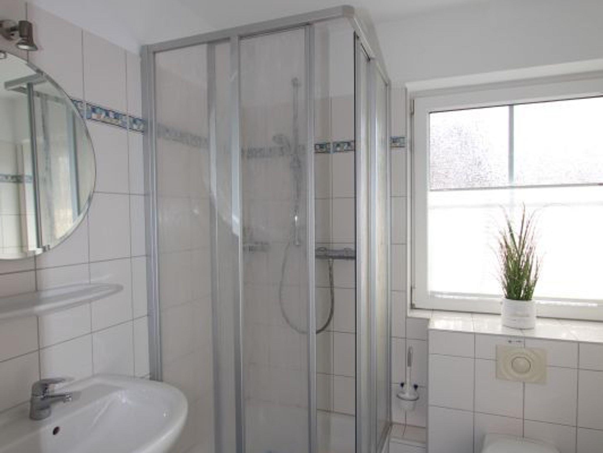 Im OG: ein Schlafzimmer mit Doppelbett und 32 Zoll Flachbildschirm, ein Schlafzimmer mit zwei Einzelbetten, ein schönes Tageslichtbad mit Dusche und WC.