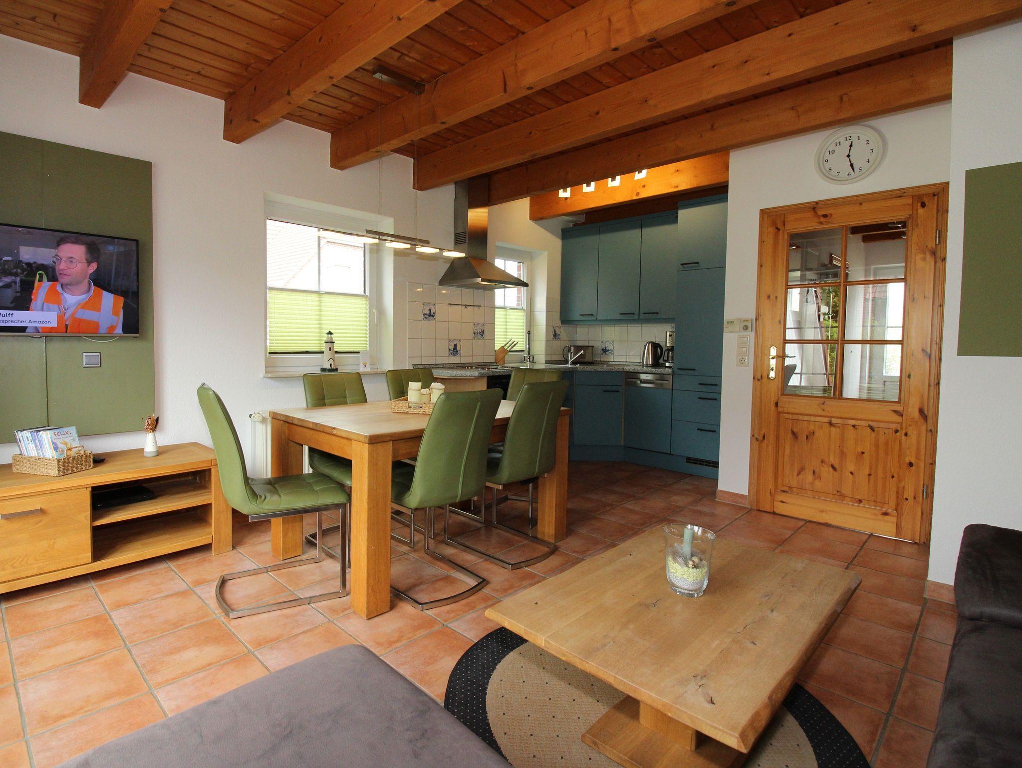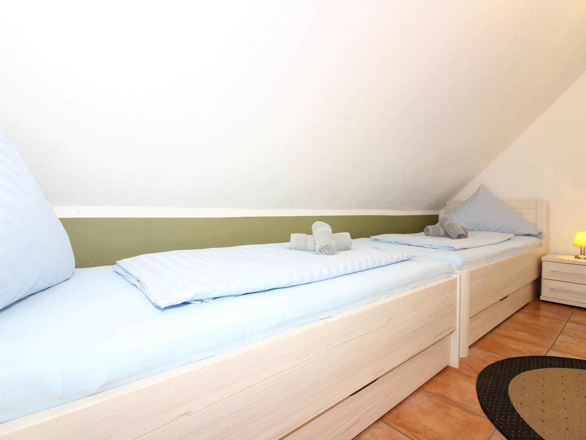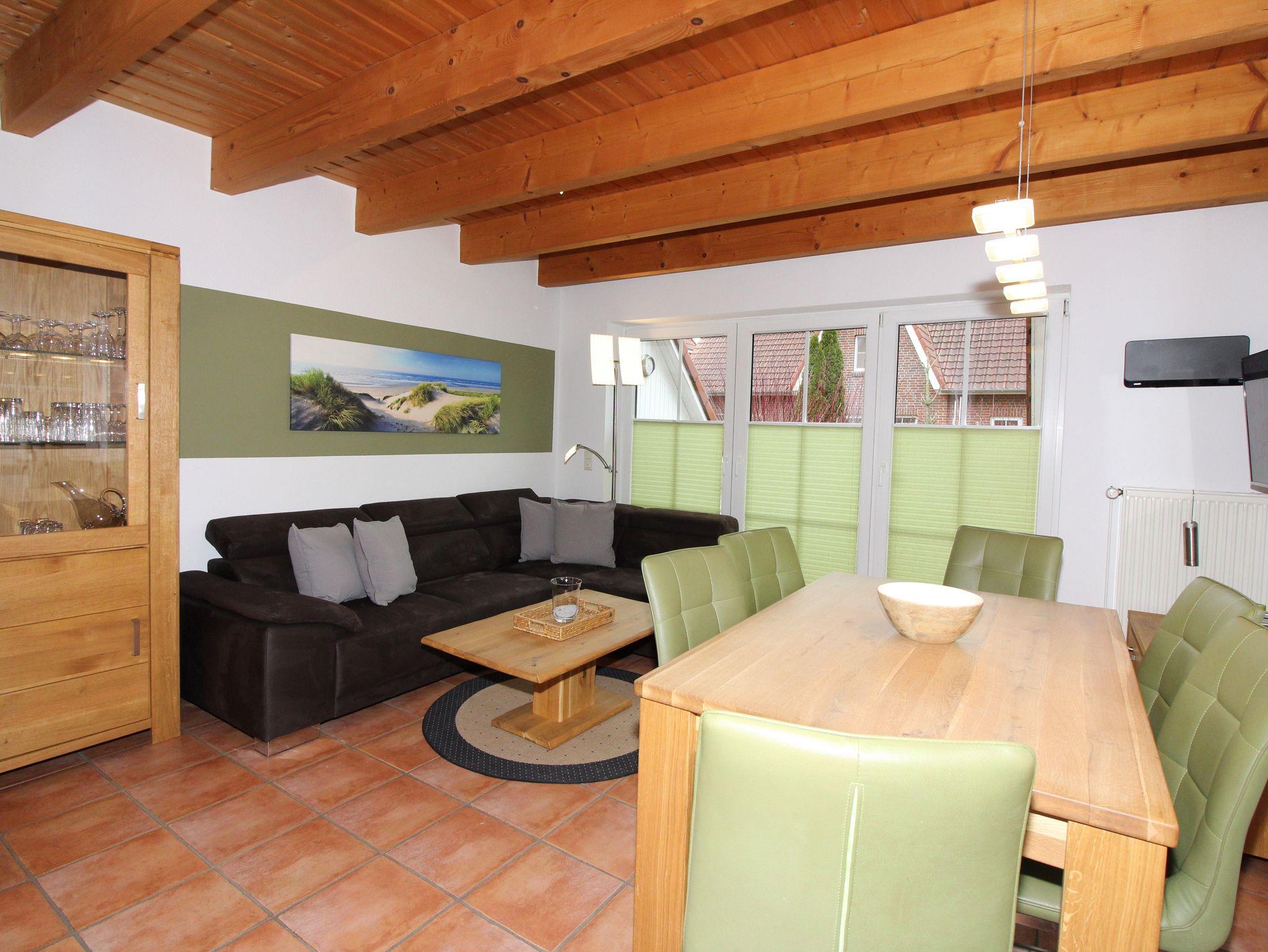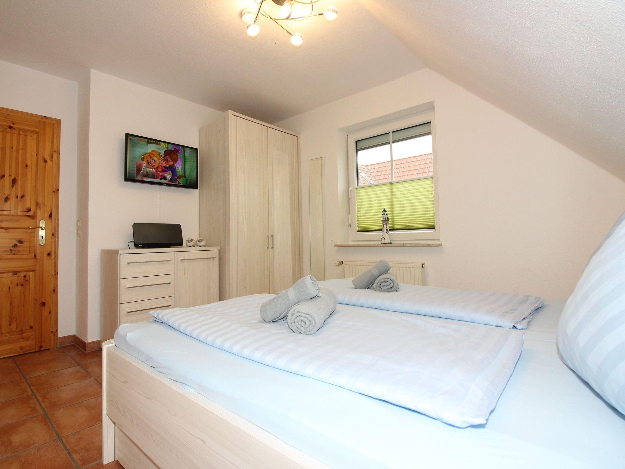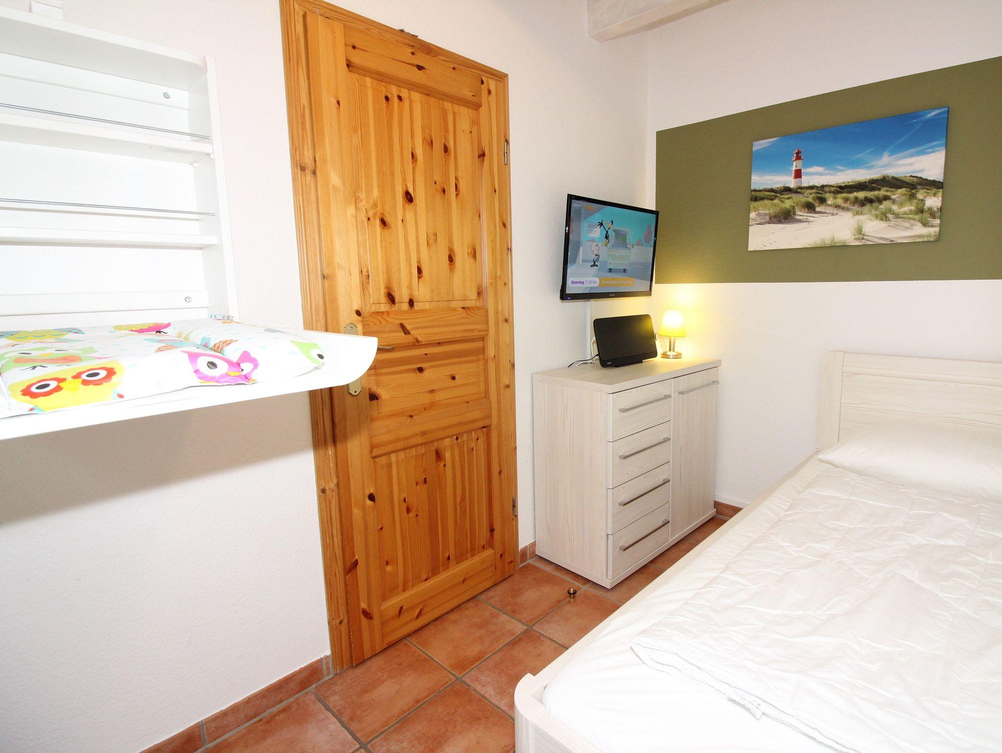 Das Ferienhaus bietet auf 70m² Platz für bis zu 5 Personen mit drei Schlafzimmern. Ein Schlafzimmer mit Doppelbett, ein Schlafzimmer mit zwei Einzelbetten und ein kleines Schlafzimmer für eine Person. Im Ergeschoss befindet sich ein Wohnraum mit voll ausgestattetem Küchenbereich inkl. Geschirrspüler und Mikrowelle. Im Wohnraum und zwei Schlafzimmern sind Flat-TVs installiert. Neben dem Hauptduschbad gibt es eine zusätzliche Toilette. Für die kleinen Gäste ist ein Kinderreisebett (mit Matratze), ein Hochstuhl und eine Wickelkommode vorhanden. Vom Wohnraum aus ist eine Terrasse und ein eigener Gartenbereich erreichbar.