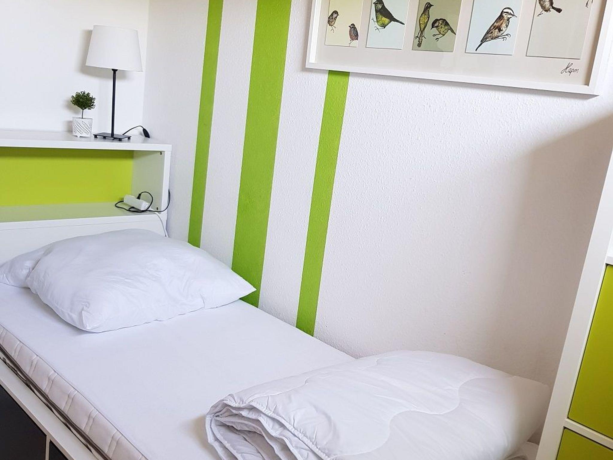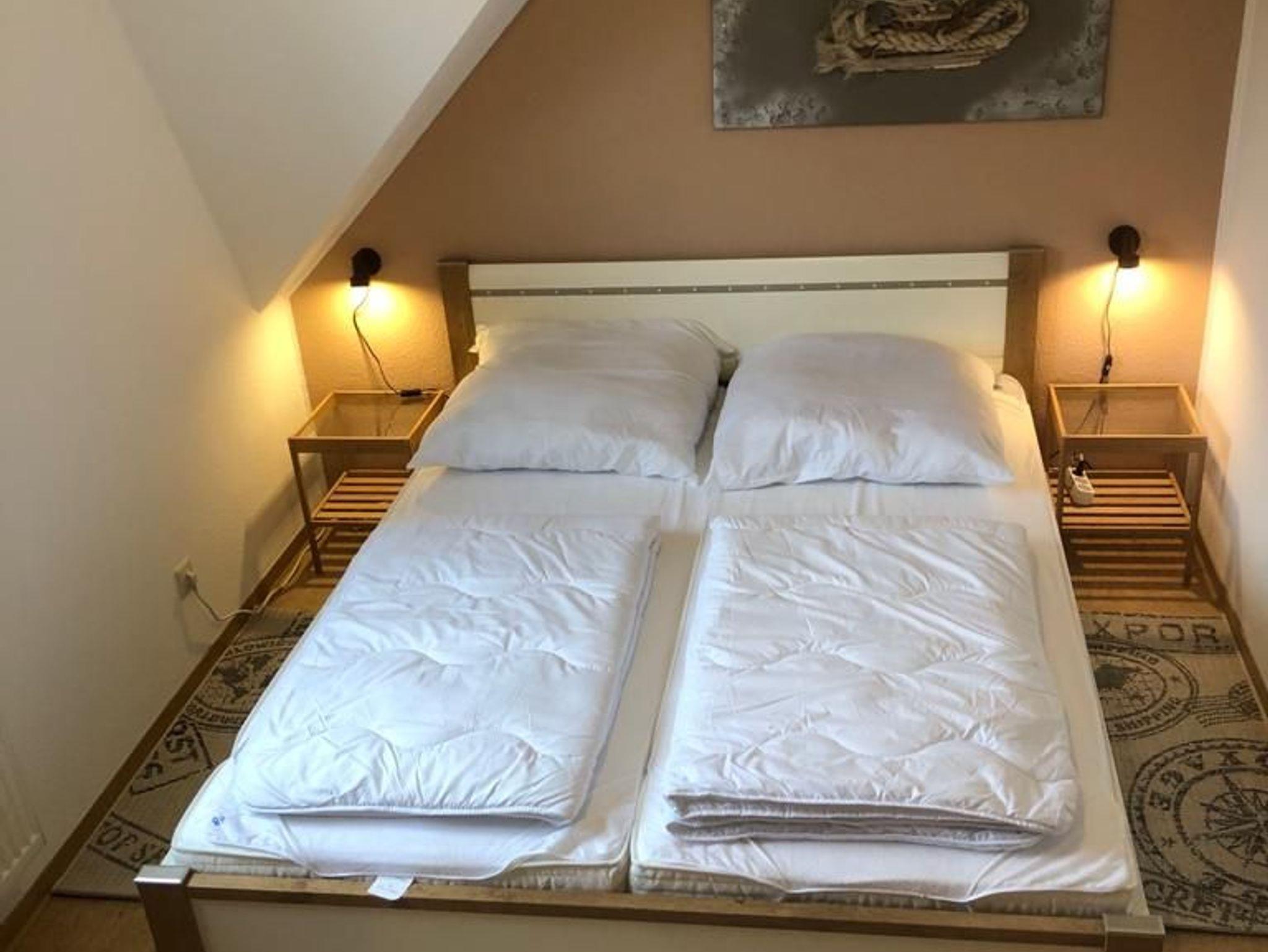 Im Schlafzimmer zur Deichseite steht ein richtiges Gitterbett mit Matratze für die kleinsten. Im dortigen Kleiderschrank befindet sich noch ein Reisebett mit Matratze.