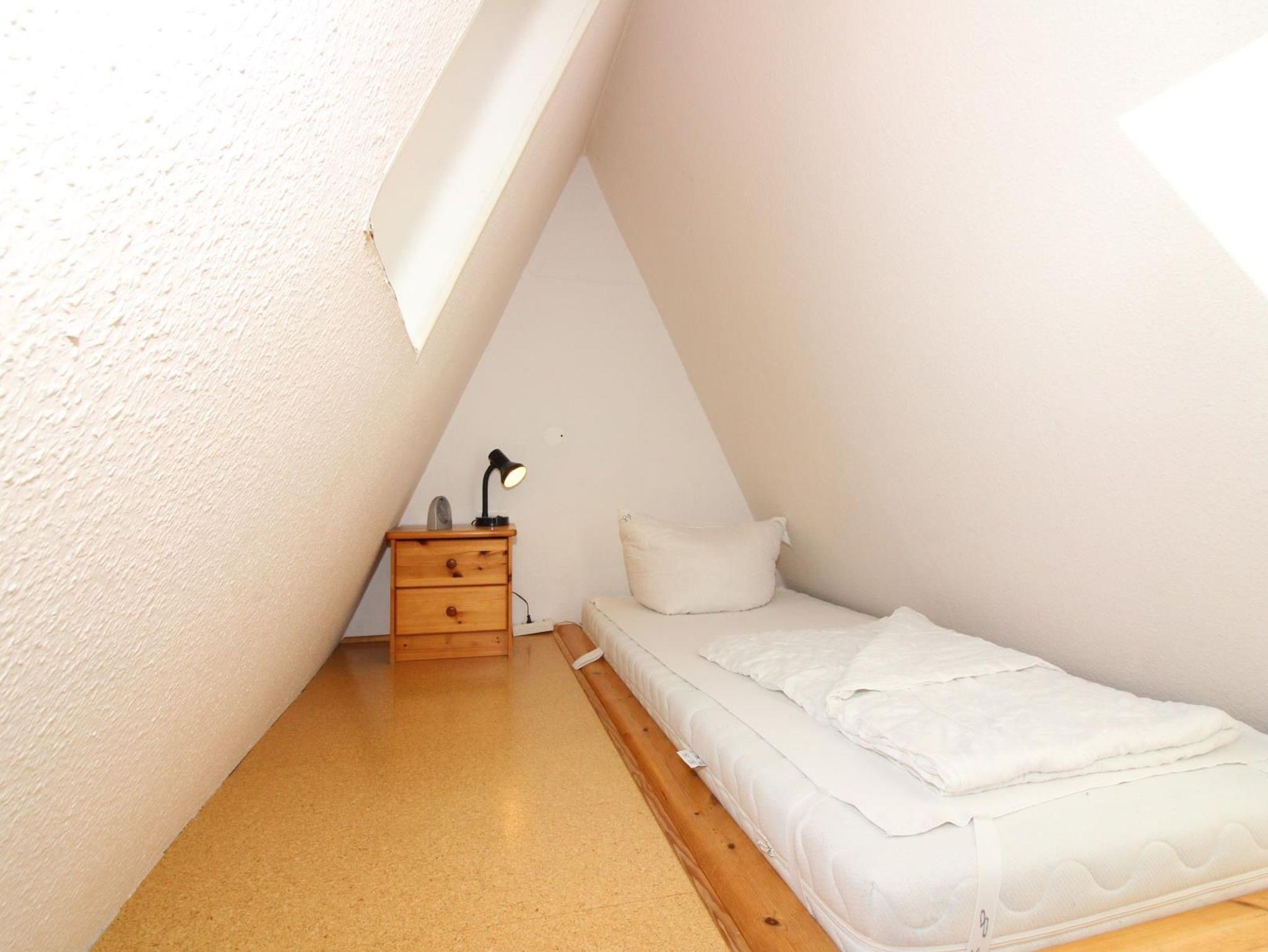 Im Dachgeschoss gibt es drei Schlafplätze. In den Erkern sind ein Einzelbett und ein Doppelbett in Schlafkojen verbaut. Auch hier gibt es einen Flachbild TV. Außerdem zwei Sessel plus Tisch.