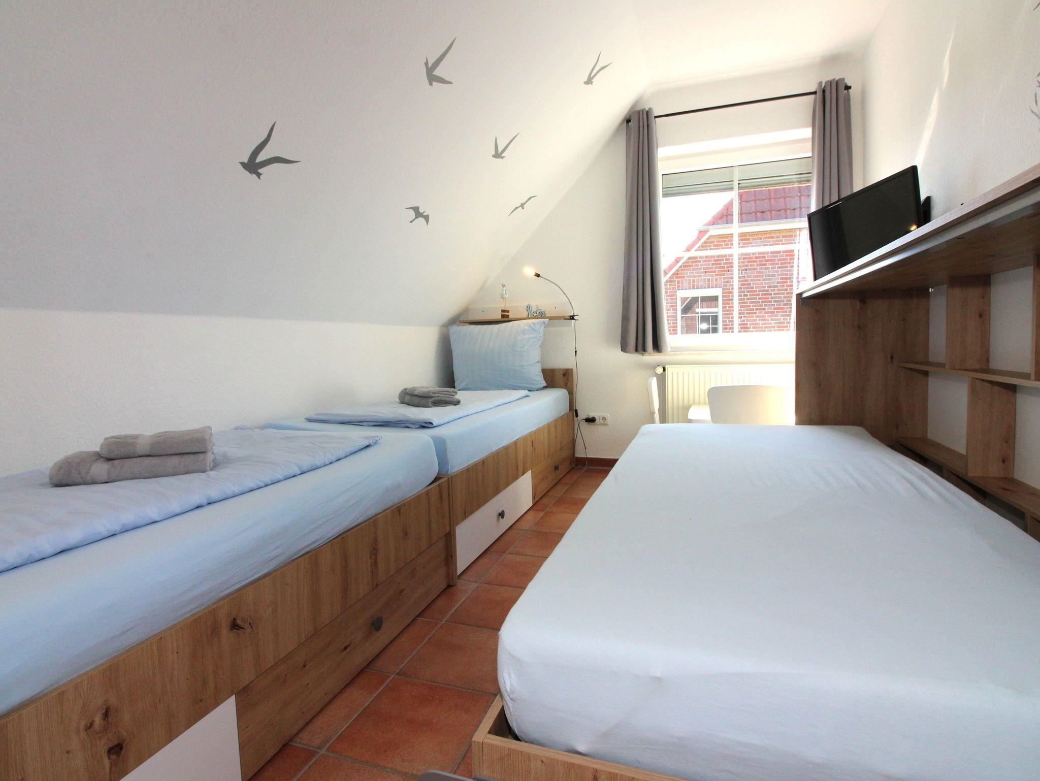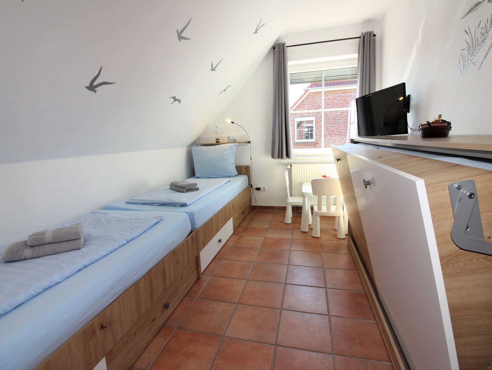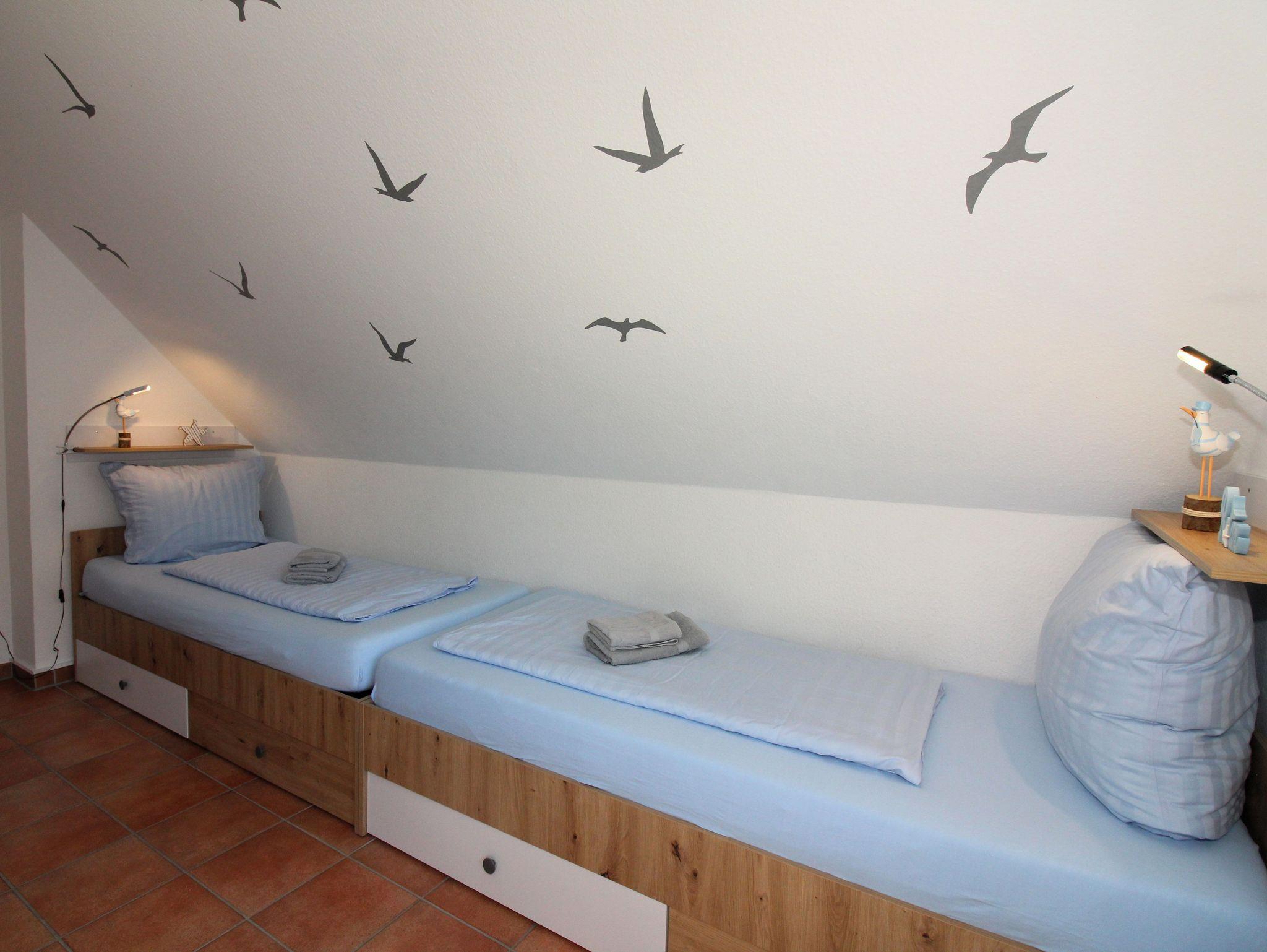 ein Schlafraum mit zwei getrennten Betten