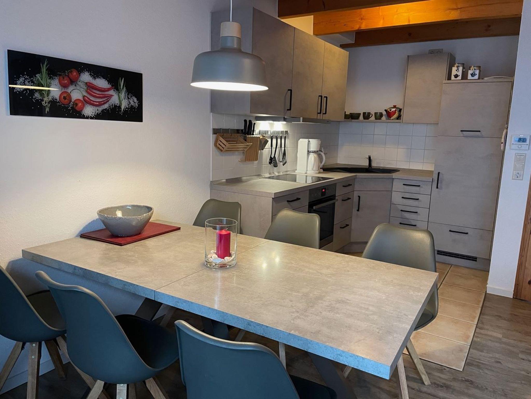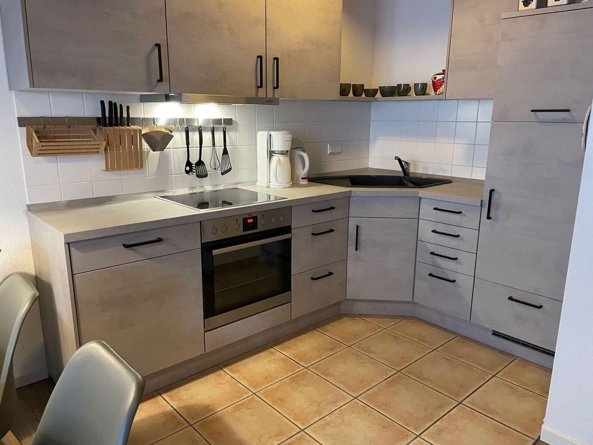 DerKüchenbereich ist mit einer neuen, sehr modernen Einbauküche (2023) mitGeschirrspüler, Kühlschrank mit Gefrierfach, Mikrowelle, Backofen, Waffeleisen, Eierkocher, Mixer, Toaster etc. ausgestattet.