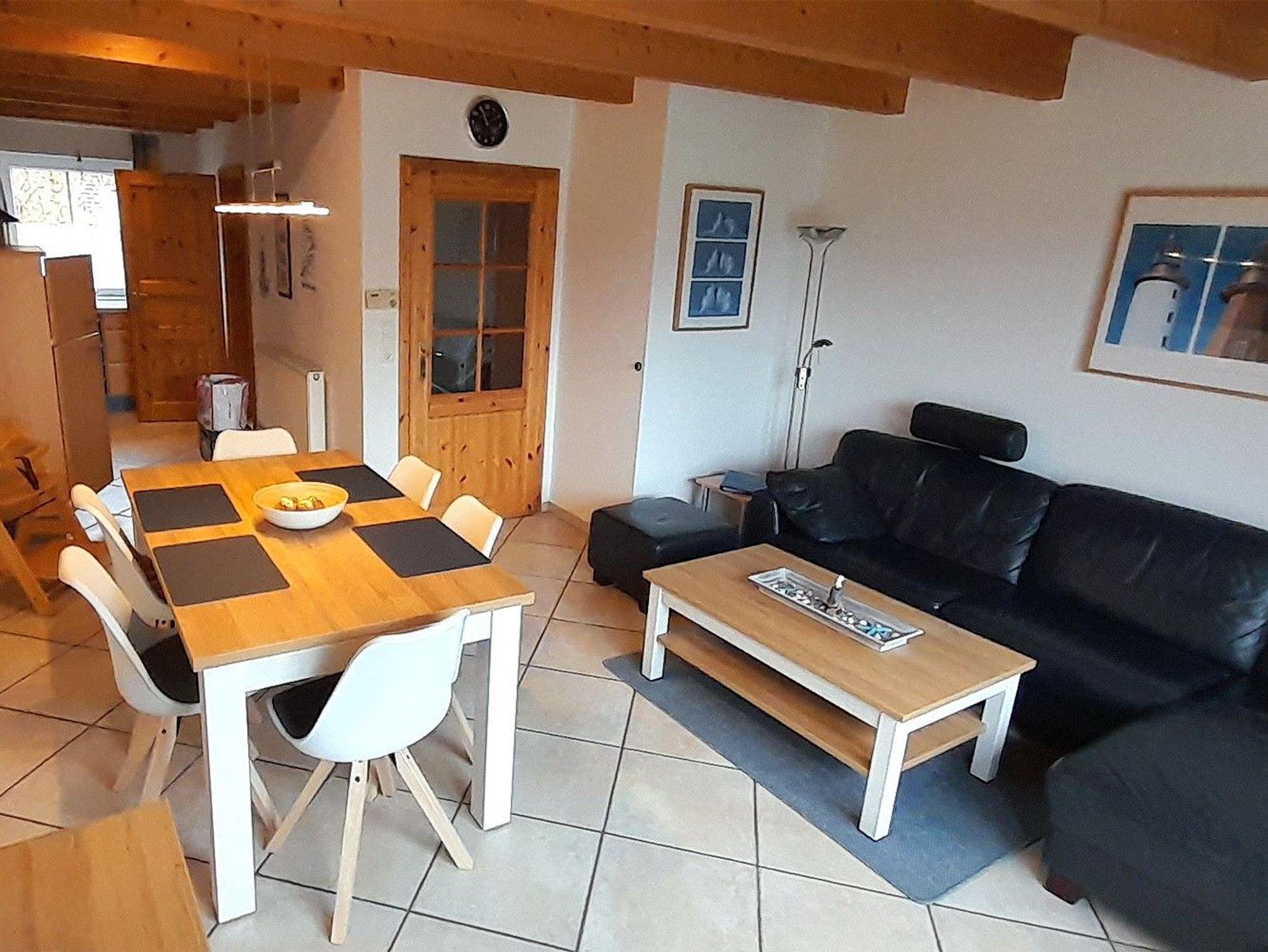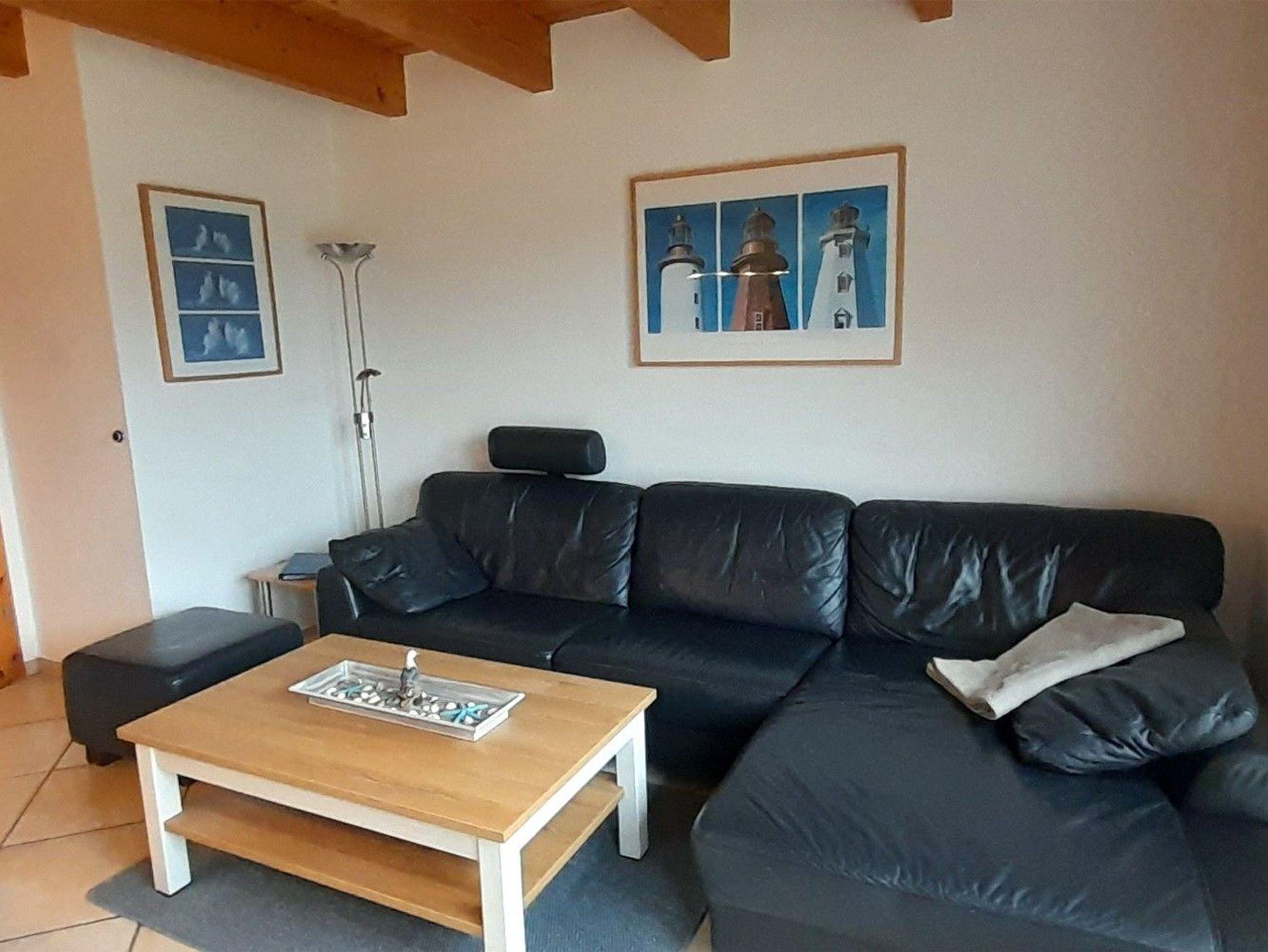 sehr geräumiger, im Frühjahr 2023 (teil-)neu möblierter Wohn- und Essbereich mit gemütlicher Leder-Couch und moderner Essgruppe für bis zu 6 Personen, zwei Kinderhochstühle, 102 cm LCD-HD-Fernseher mit Digital-Kabel-TV, Sony Sound-Anlage mit Blu-Ray-Spieler, Fußbodenheizung, Deckenfluter inkl. Leselampe, Blu-Rays, DVDs, CDs, Spiele, Bücher