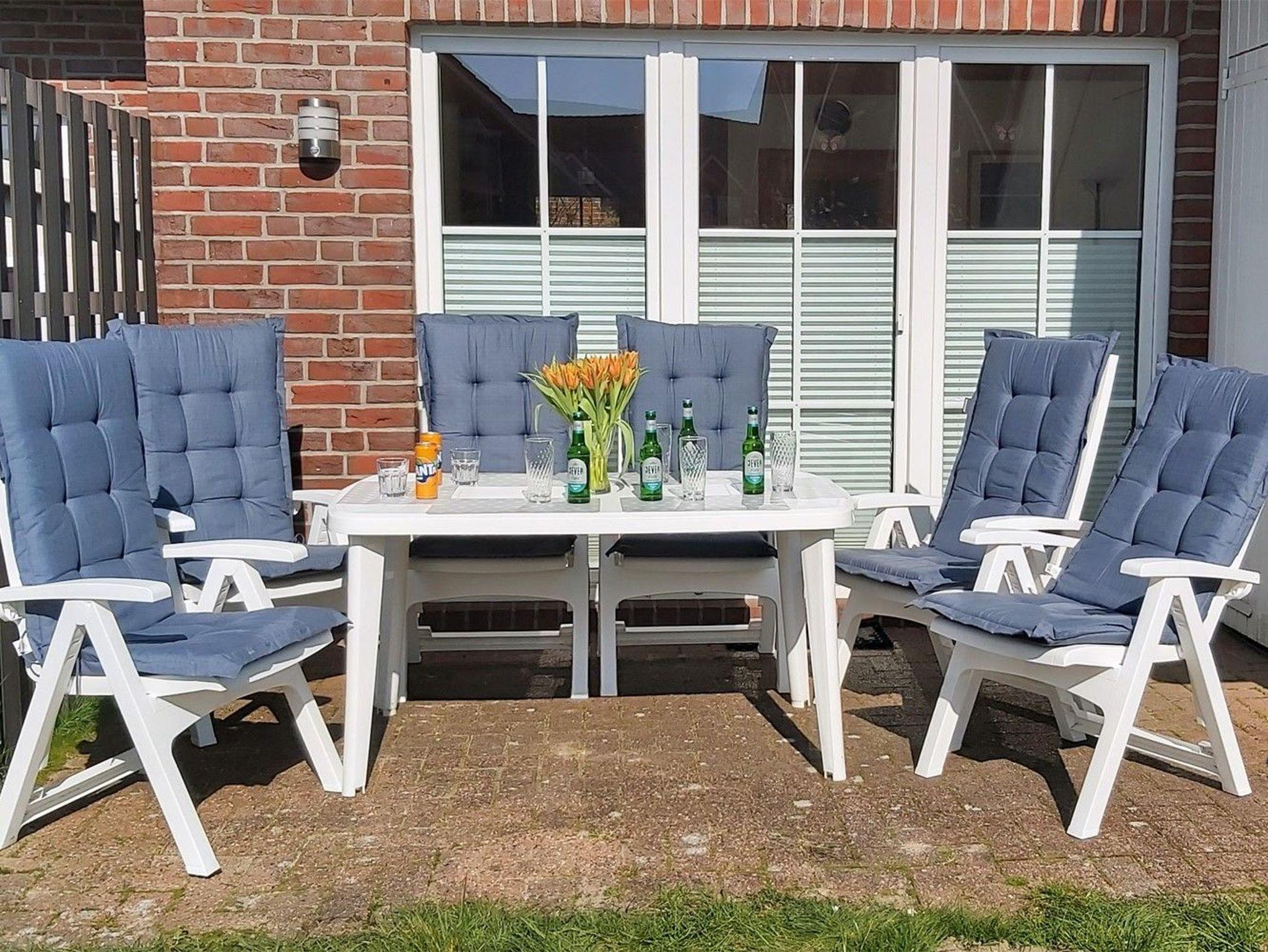 im Ferienhaus 65 wohnen Sie auf ca. 80 m² Wohnfläche, mit Terrasse (schöne Süd-West-Lage) und kleinem Garten direkt an einem Siel. Es liegt in 2. Reihe - dadurch sind Terrasse und Garten ruhig gelegen und gleichzeitig liegen Spielscheune, der Deich und die Promenade in unmittelbarer Nähe.
