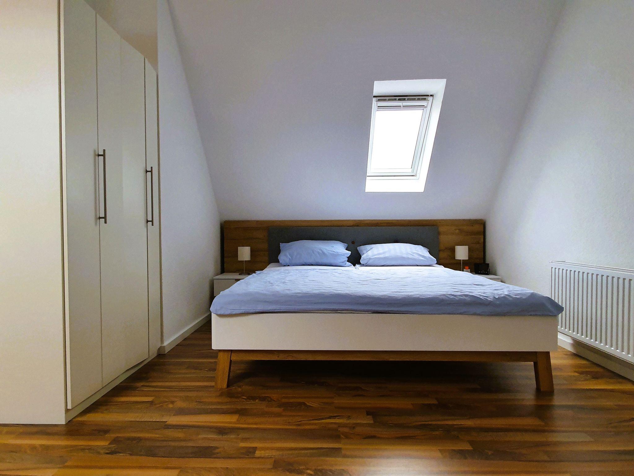 Begeben Sie sich eine Treppe nach oben, finden Sie zwei Schlafräume sowie ein weiteres Badezimmer. Der dritte Schlafraum liegt im neu ausgebauten gemütlichen Dachspitz.