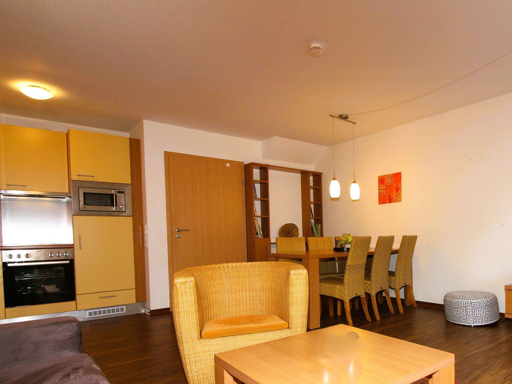 Die Wohnung ist aufgrund des Wohnbereiches und der sonstigen Ausstattung für bis zu sechs Personen geeignet. Welche Schlafmöglichkeiten Sie nutzen möchten, können Sie frei wählen. Im gesamten Haus steht Ihnen ein kostenloser WLAN-Internetzugang bereit. Für Ihre Sicherheit wurden in den Räumen Rauchmelder installiert. Hallenbad, Sauna und Dampfbad sind gegenüber mit dem Bademantel bequem zu erreichen.